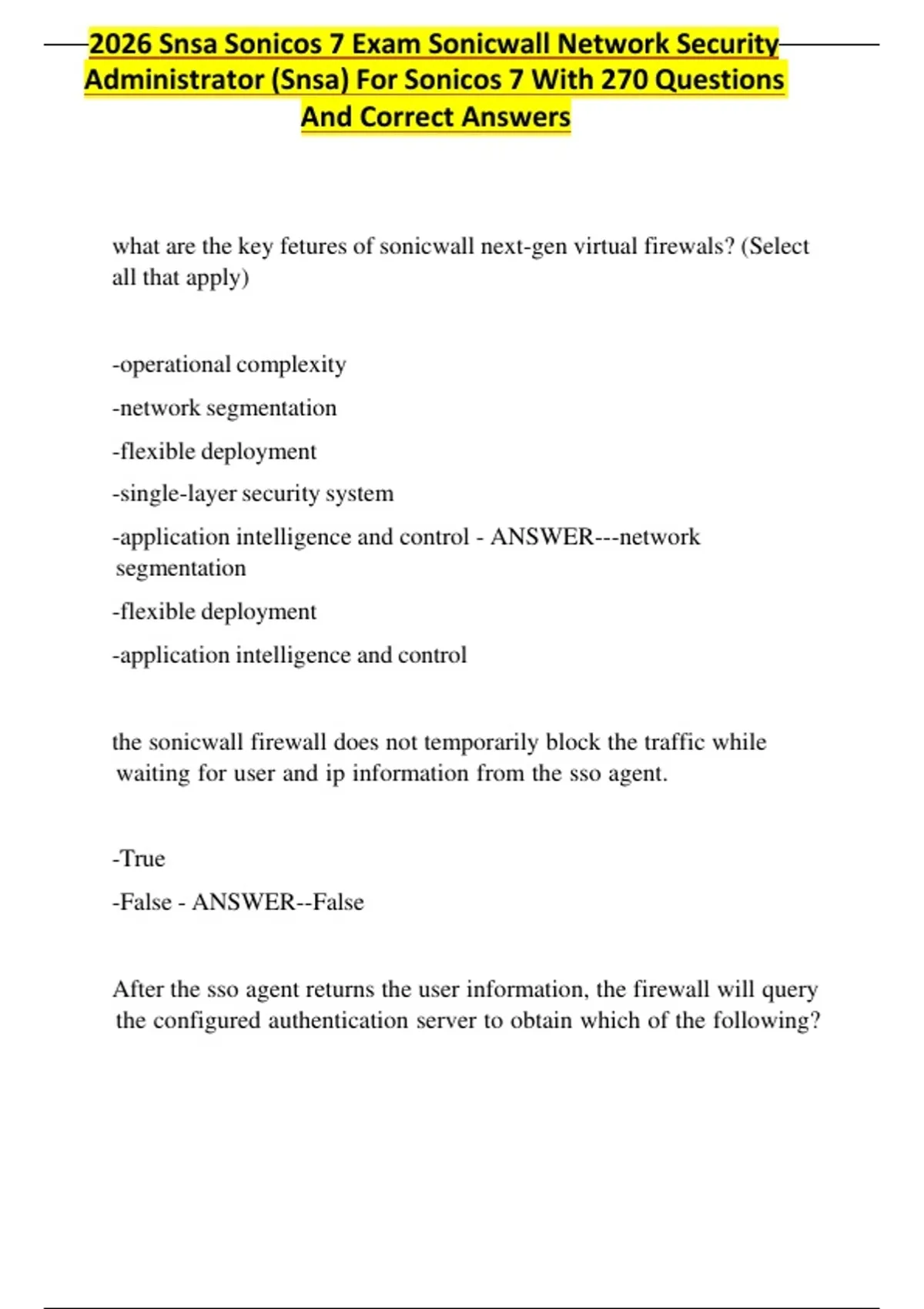 2026 SNSA SonicOS 7 Exam | 270 Verified Questions & Correct Answers | Complete Certification Study Pack