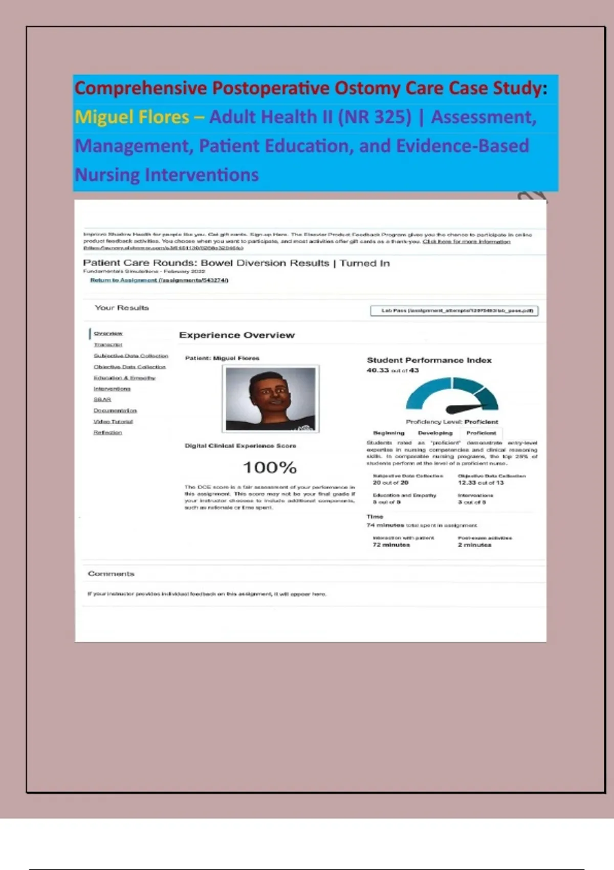 Comprehensive Postoperative Ostomy Care Case Study: Miguel Flores – Adult Health II (NR 325) | Assessment, Management, Patient Education, and Evidence-Based Nursing Interventions
