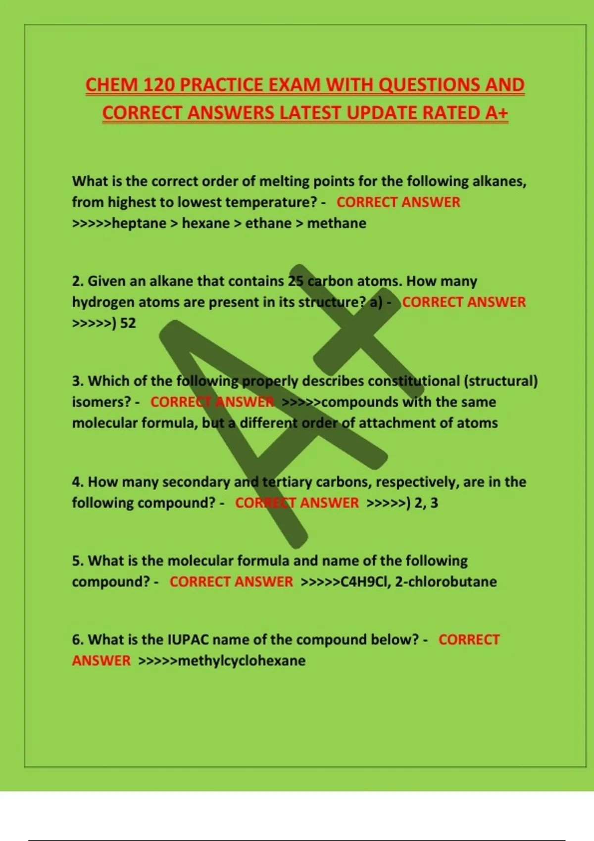 CHEM 120 PRACTICE EXAM WITH QUESTIONS AND