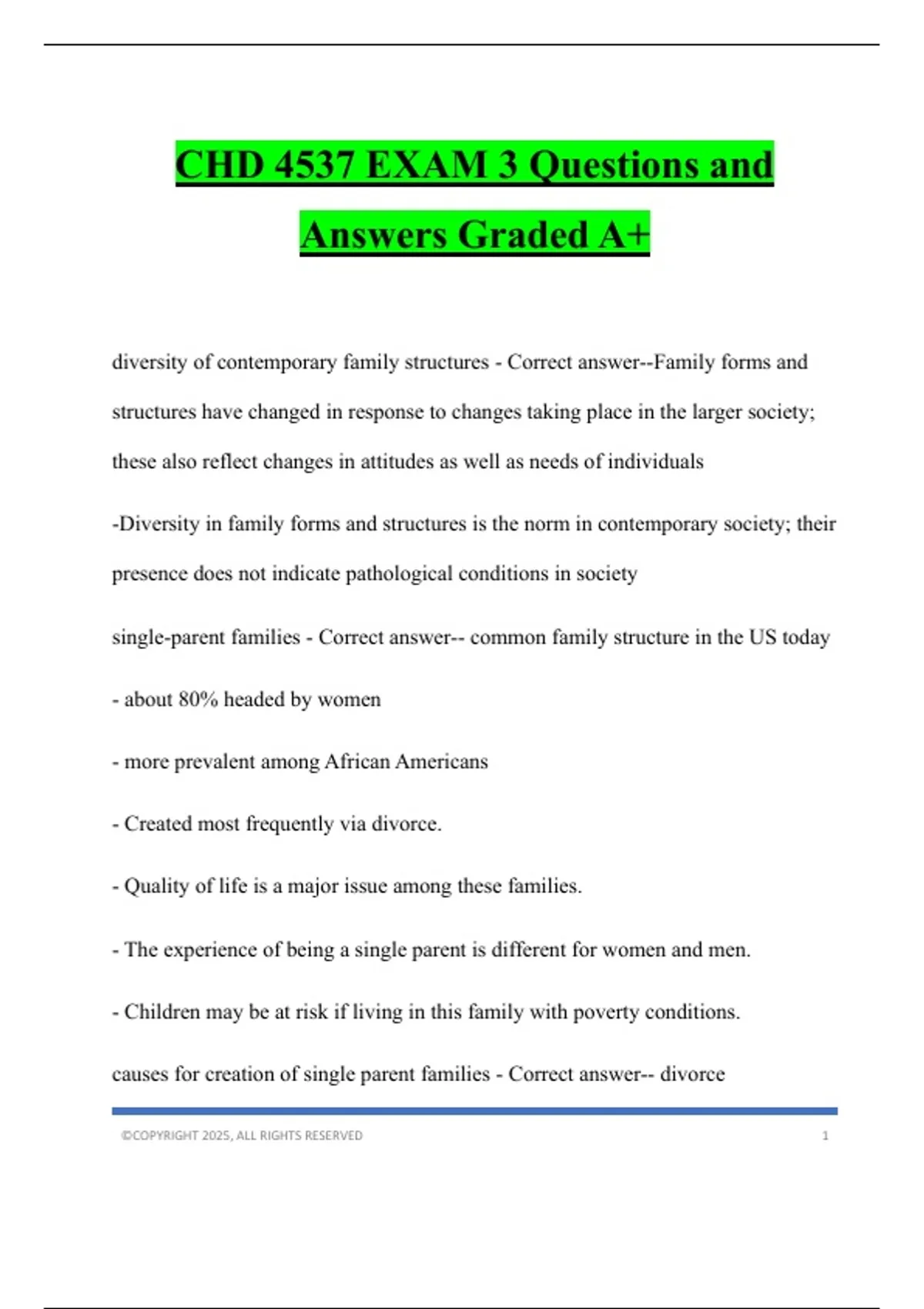 single-parent families - Correct answer-- common family structure in the US today