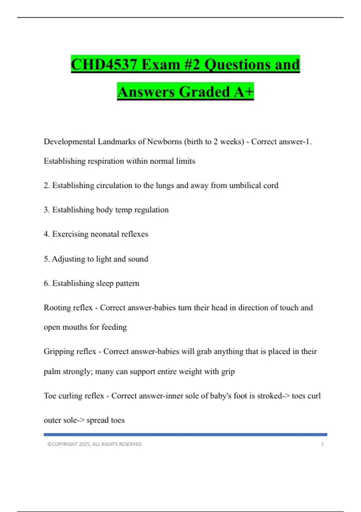 Developmental Landmarks of Newborns (birth to 2 weeks) - Correct answer-1.