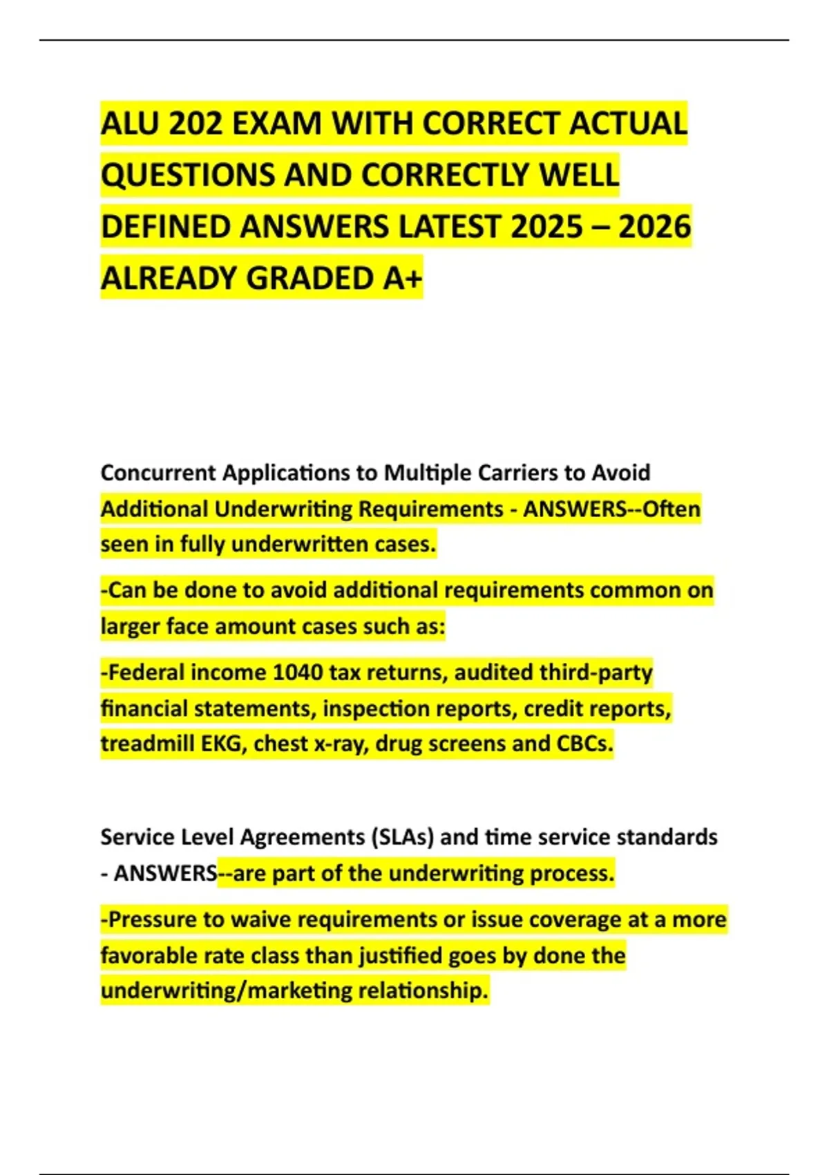 Additional Underwriting Requirements - ANSWERS--Often