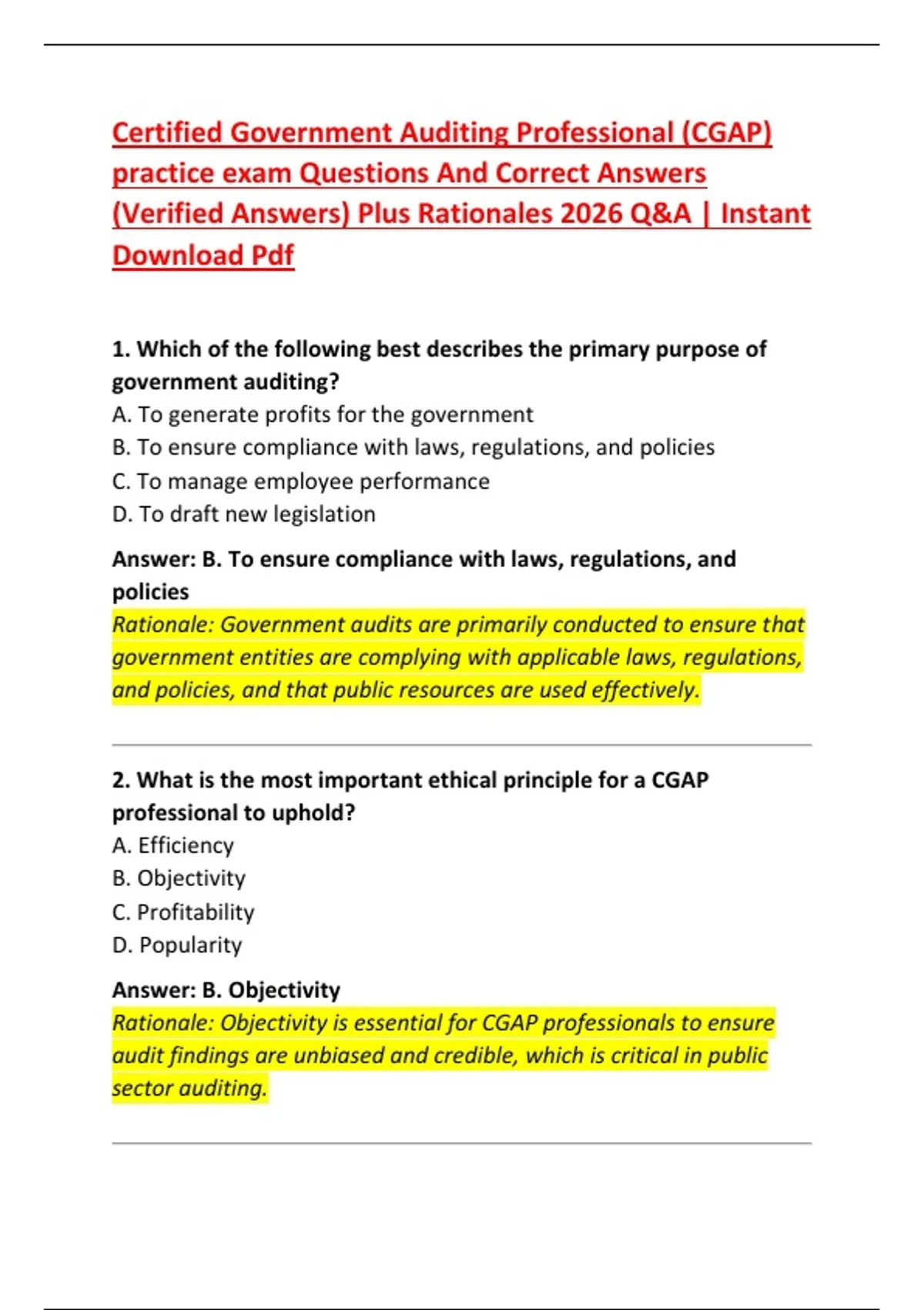 practice exam Questions And Correct Answers