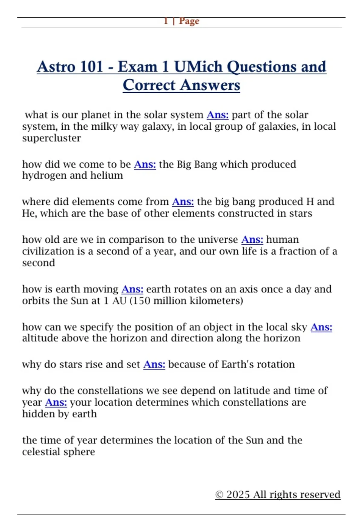 Astro 101 - Exam 1 UMich Questions and Correct Answers