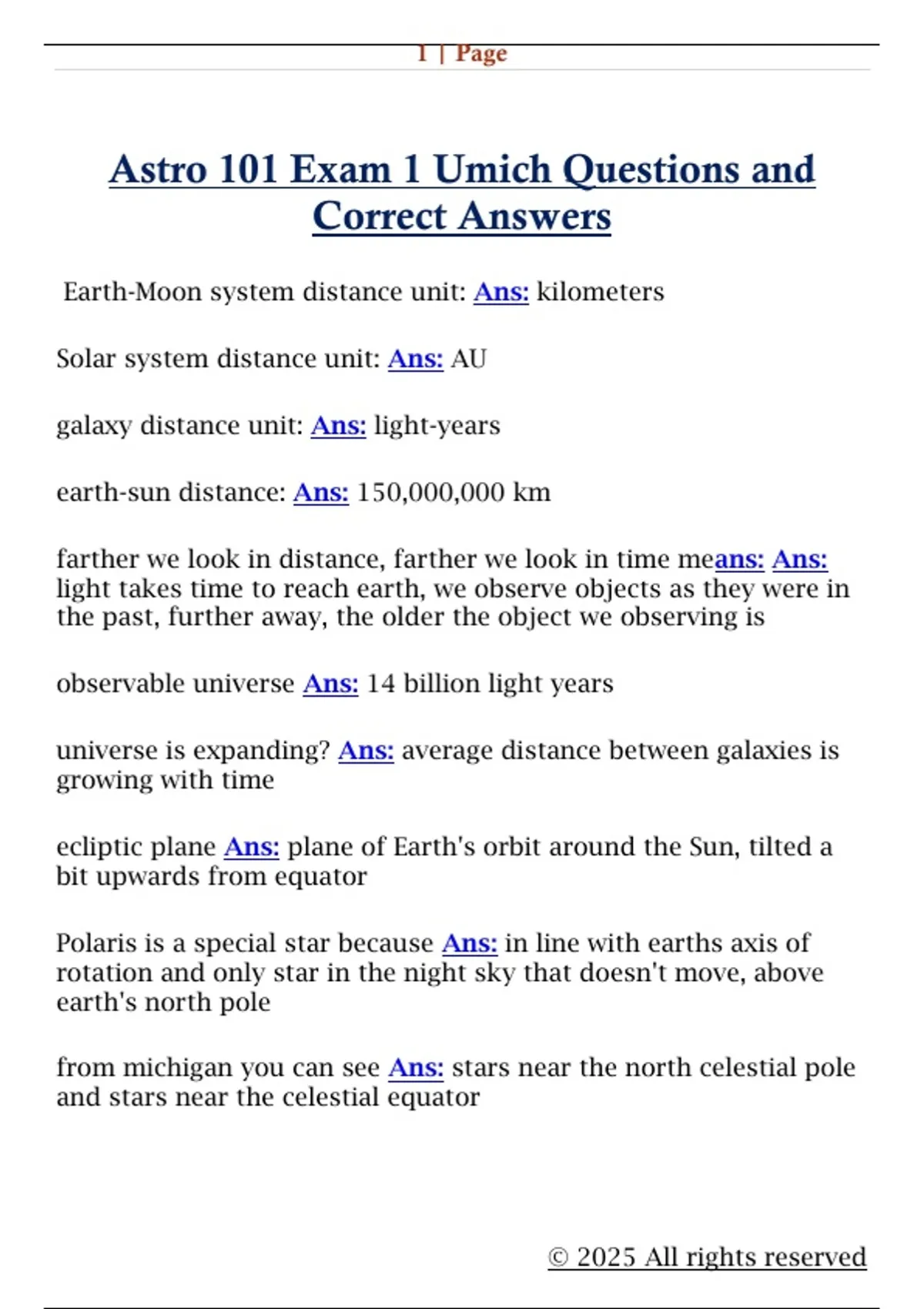 Astro 101 Exam 1 Umich Questions and Correct Answers