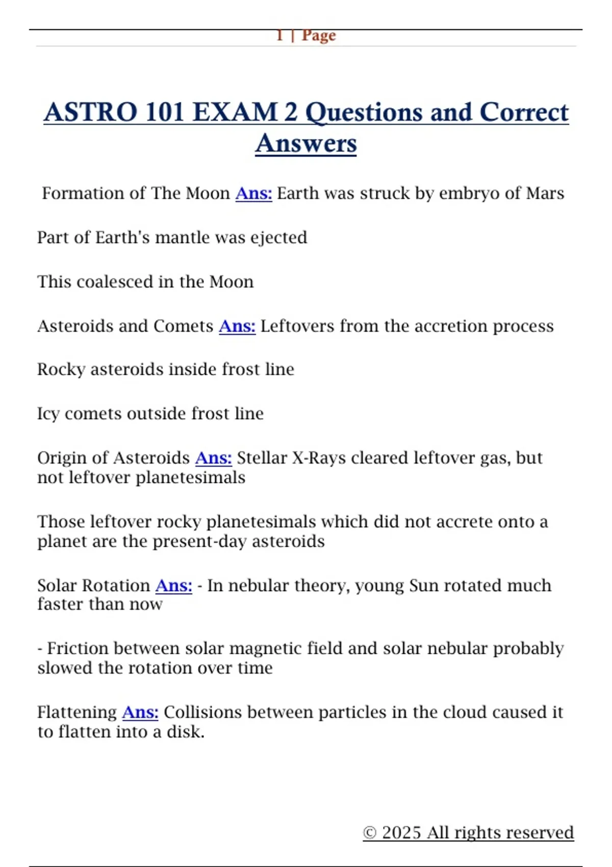 ASTRO 101 EXAM 2 Questions and Correct Answers