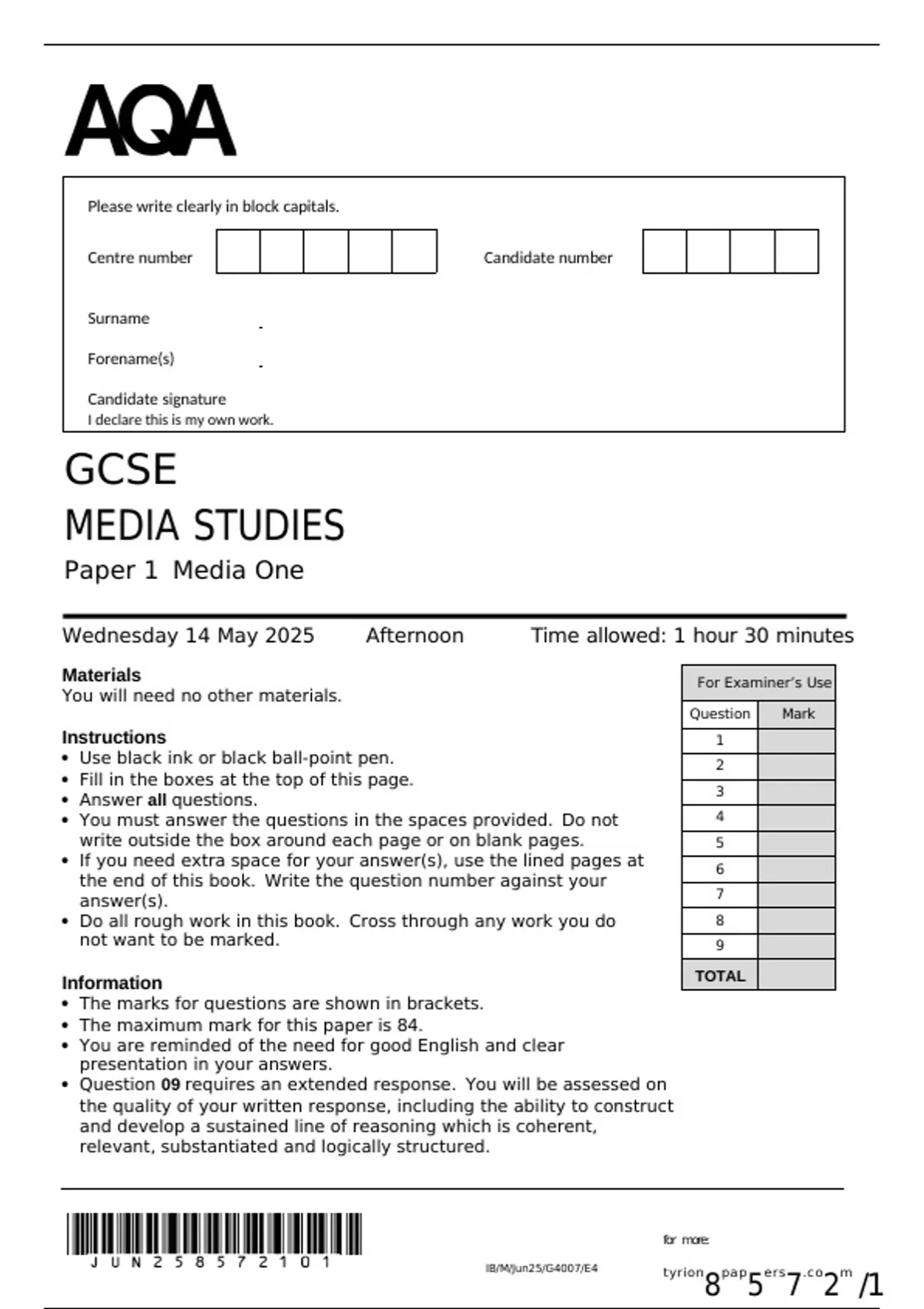 Wednesday 14 May 2025 Afternoon Time allowed: 1 hour 30 minutes