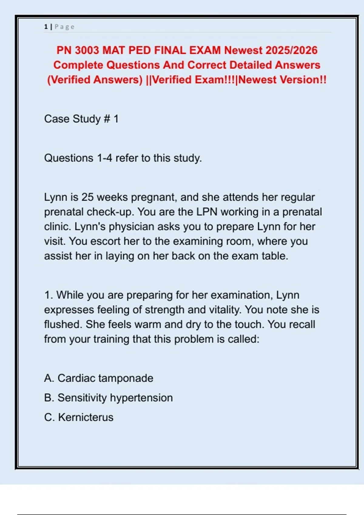 1. While you are preparing for her examination, Lynn