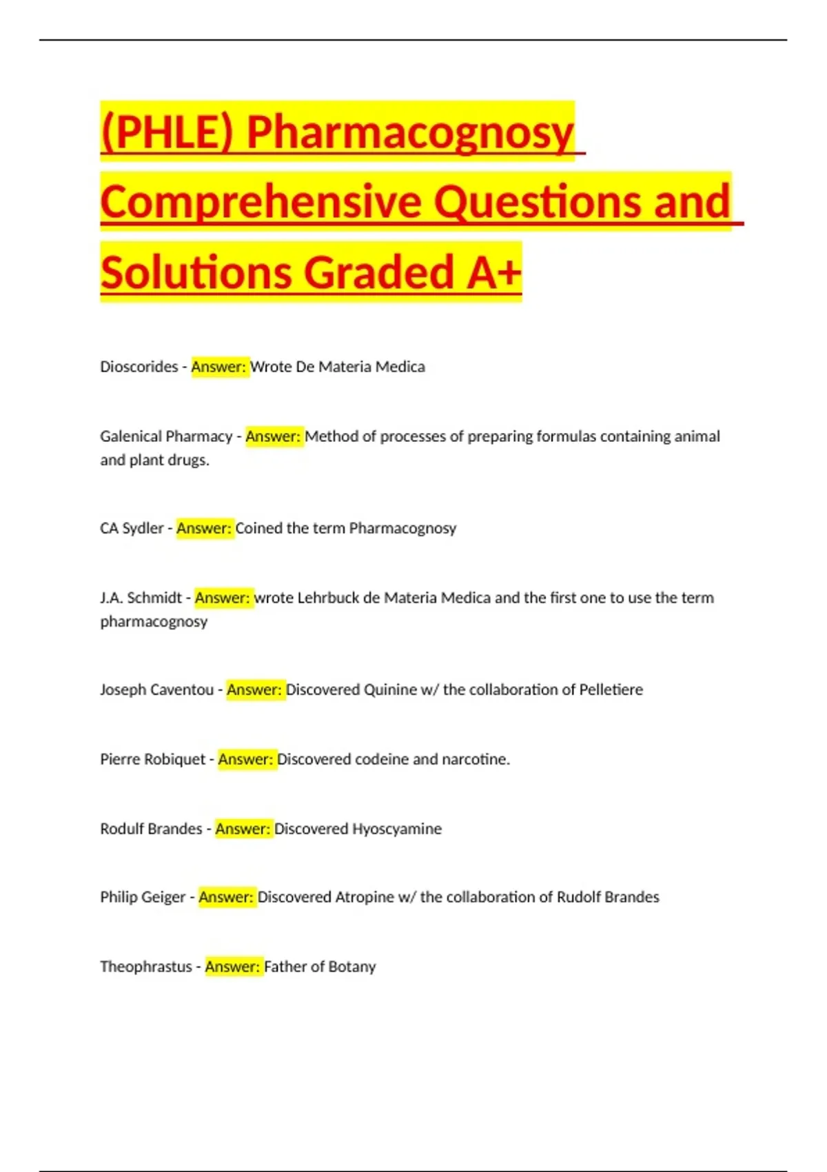 (PHLE) Pharmacognosy Comprehensive Questions and Solutions Graded A+