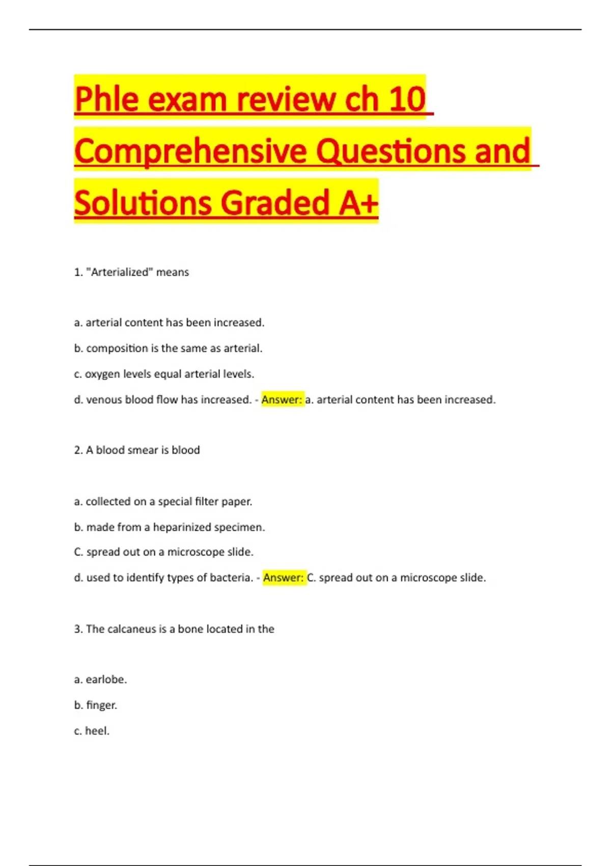 Phle exam review ch 10 Comprehensive Questions and Solutions Graded A+