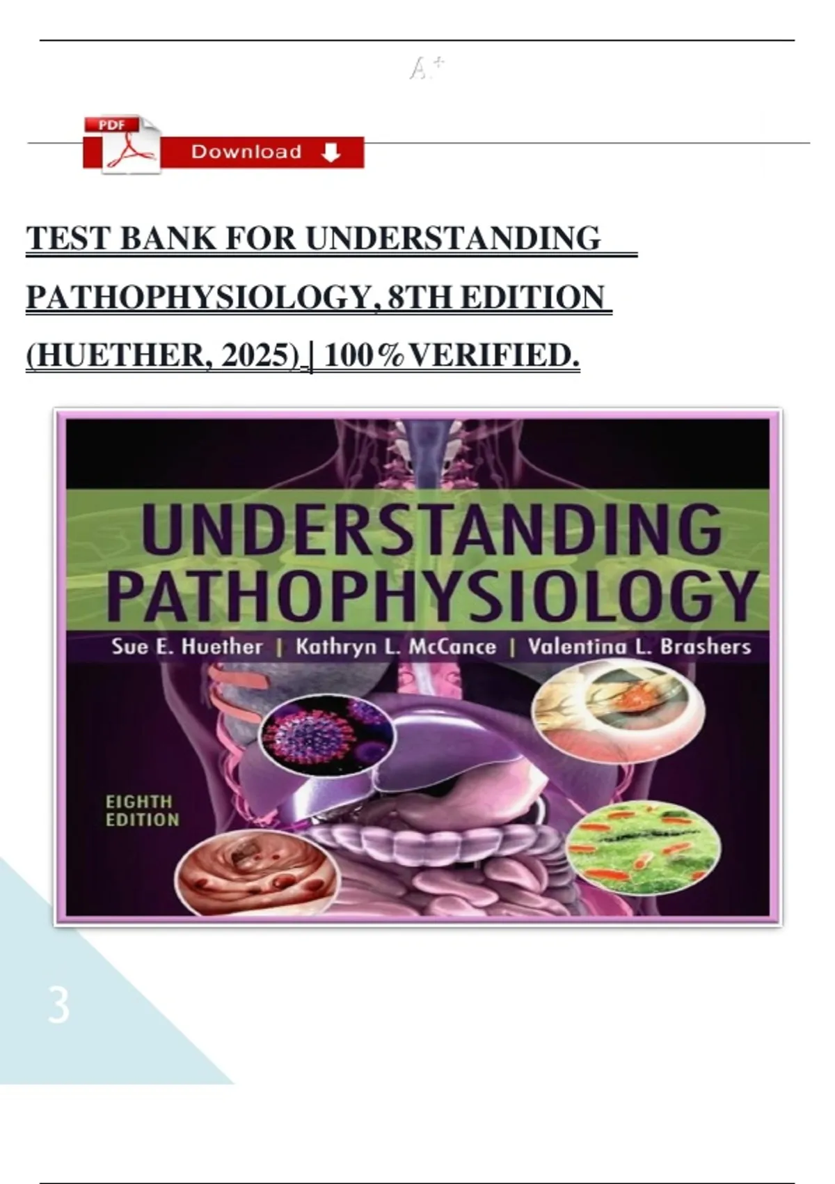 TEST BANK FOR UNDERSTANDING PATHOPHYSIOLOGY, 8TH EDITION (HUETHER, 2025) | 100%VERIFIED.