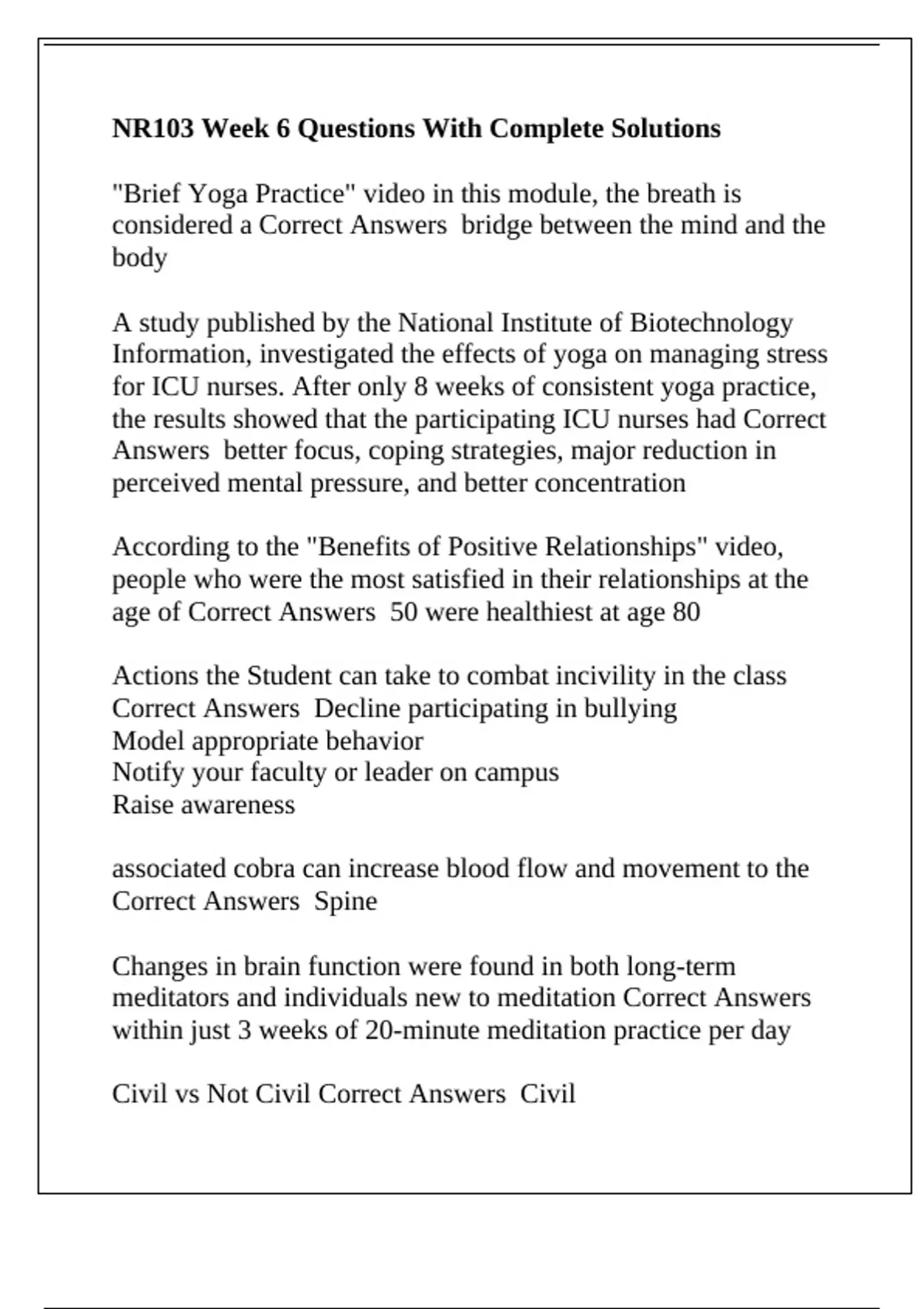Civility vs. Incivility Correct Answers Incivility