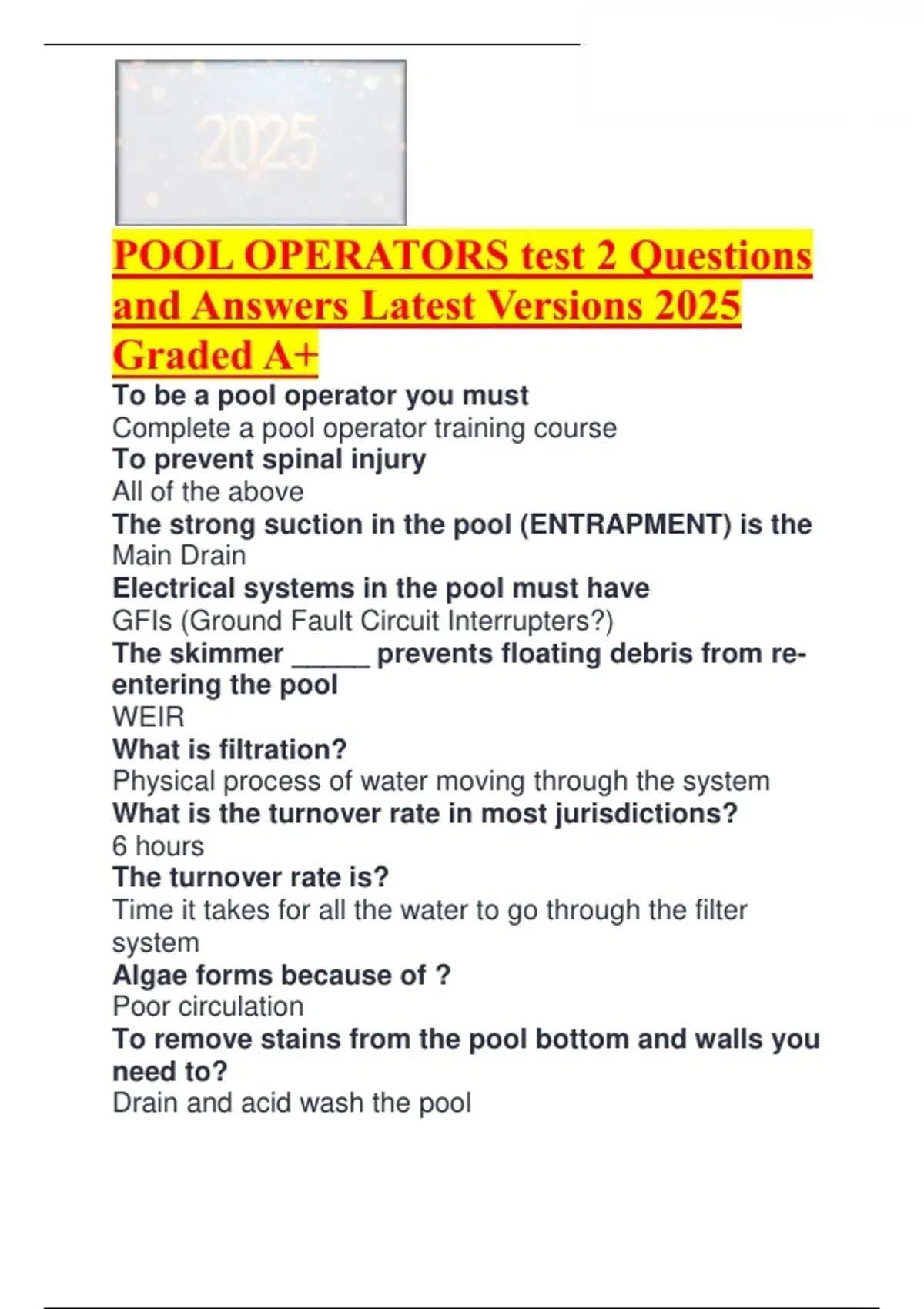 POOL OPERATORS test 2 Questions