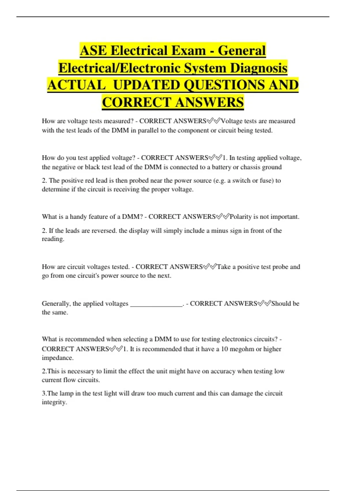 CORRECT ANSWERS✅✅1. It is important to remember that the test leads are connected in