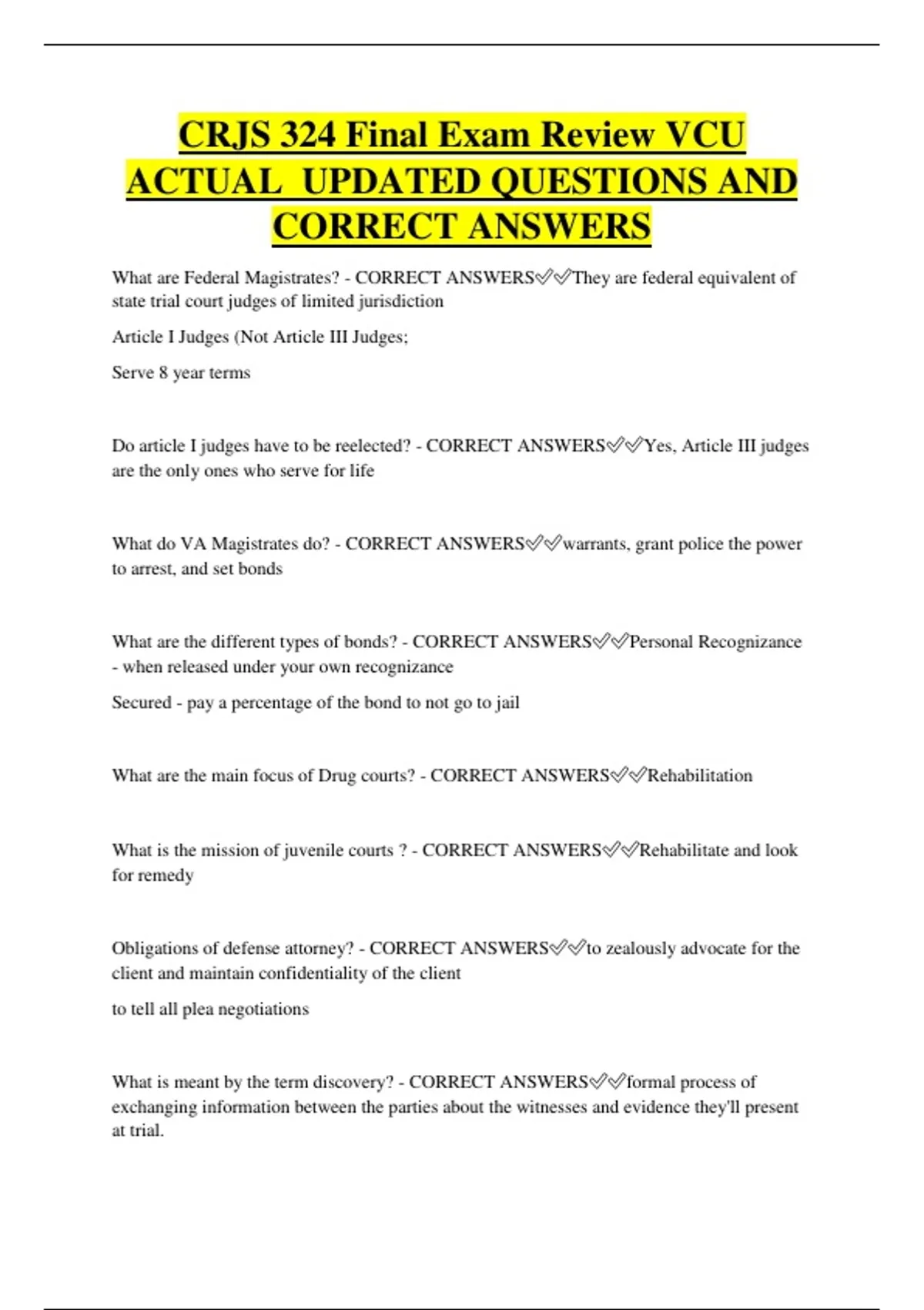 CORRECT ANSWERS