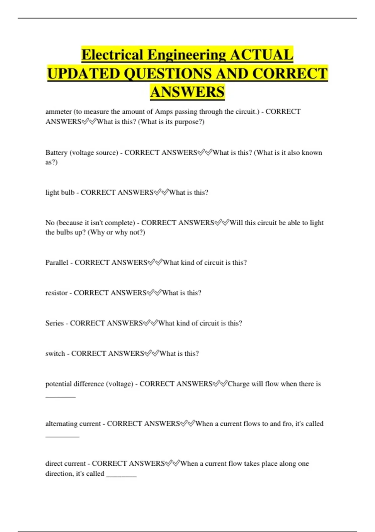 UPDATED QUESTIONS AND CORRECT
