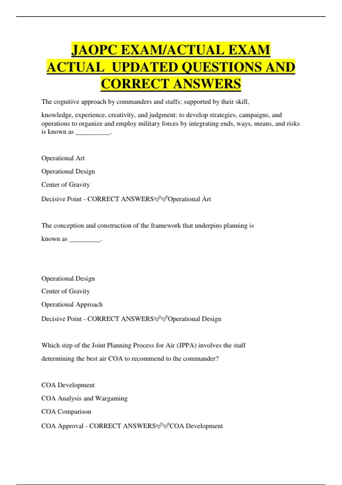 COA Approval - CORRECT ANSWERS✅✅COA Development