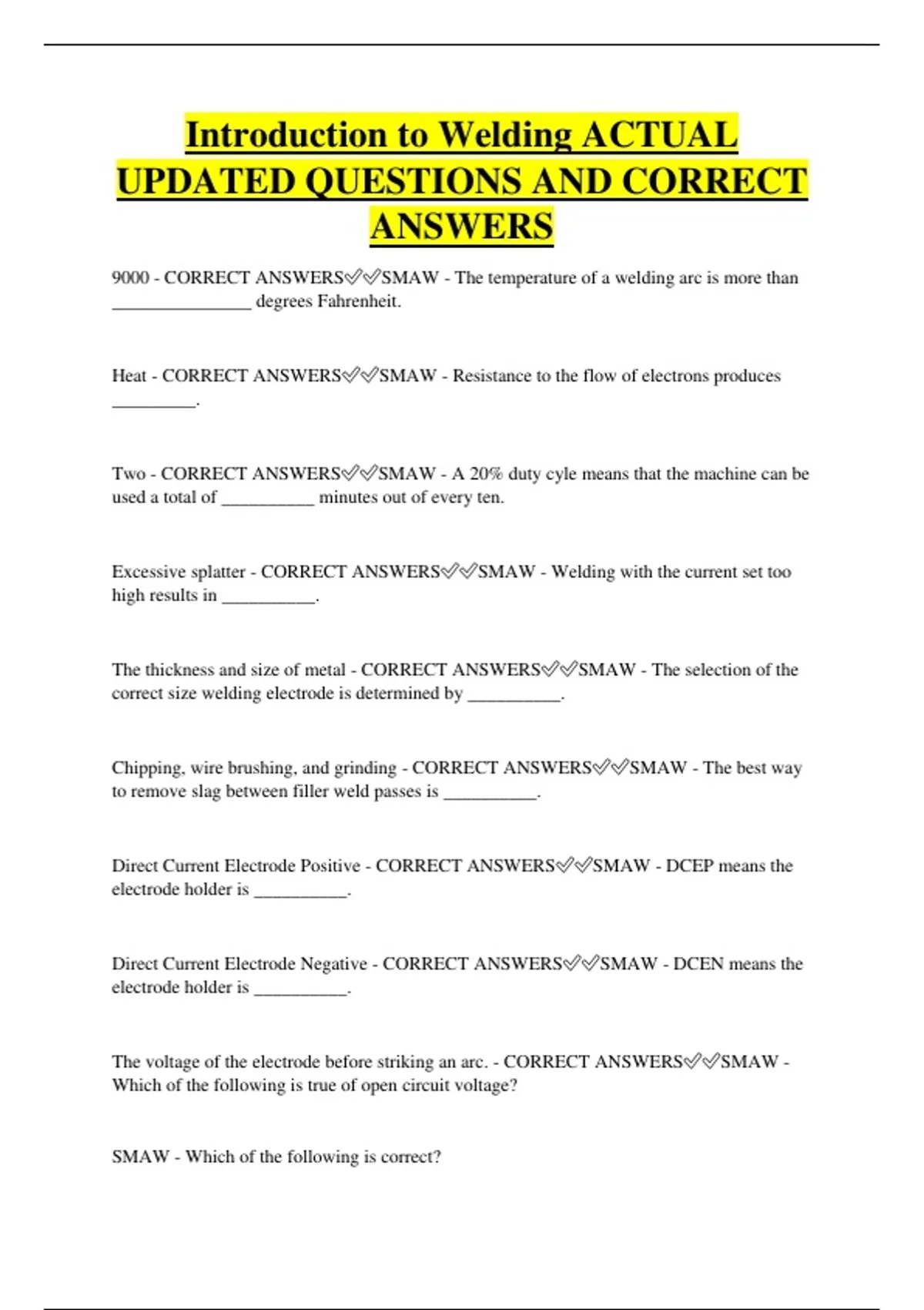 9000 - CORRECT ANSWERS✅✅SMAW - The temperature of a welding arc is more than
