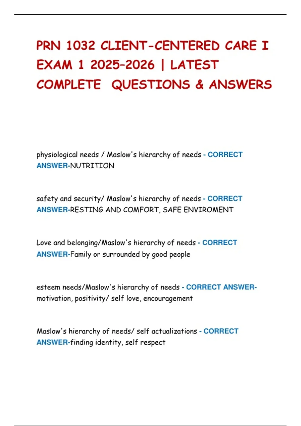 CORRECT ANSWER-1) physiological needs/ first( rest, sleep,