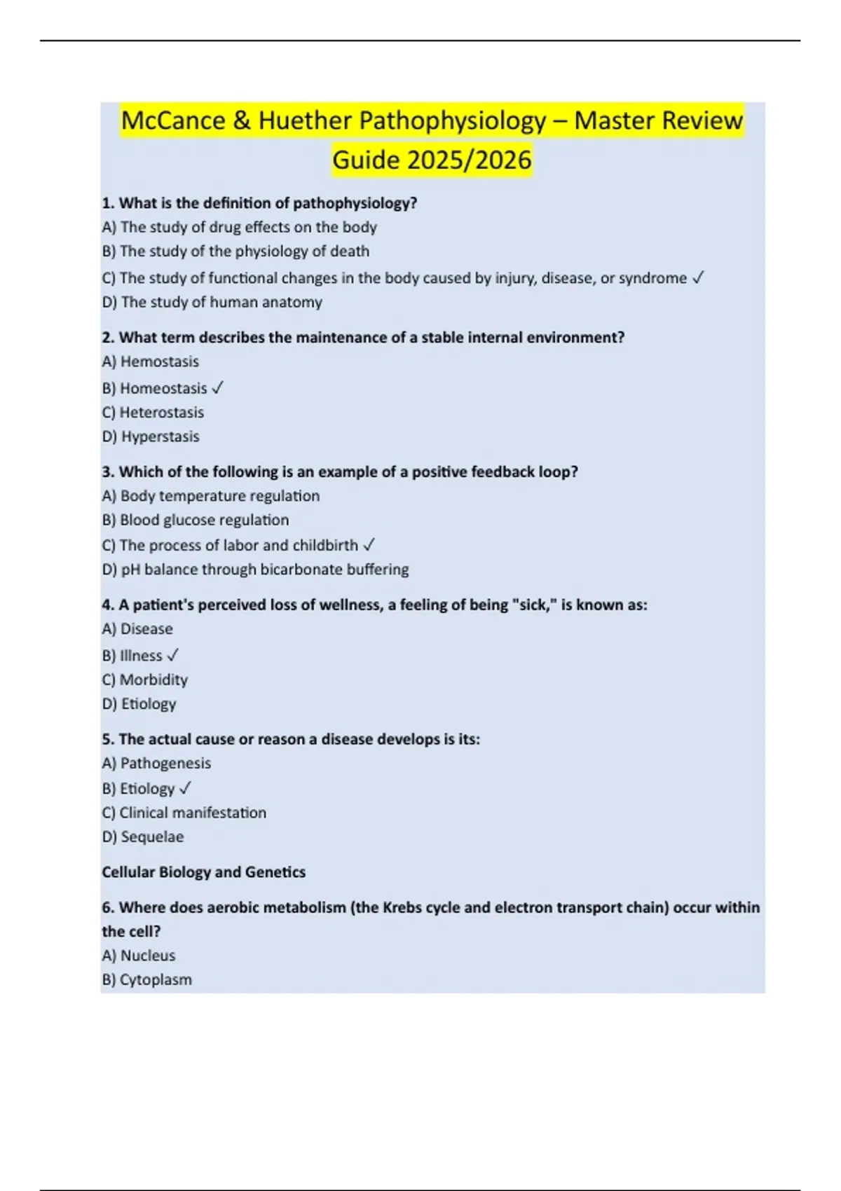 1. What is the definition of pathophysiology?
