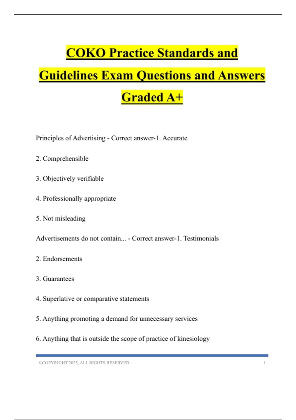Advertisements do not contain... - Correct answer-1. Testimonials