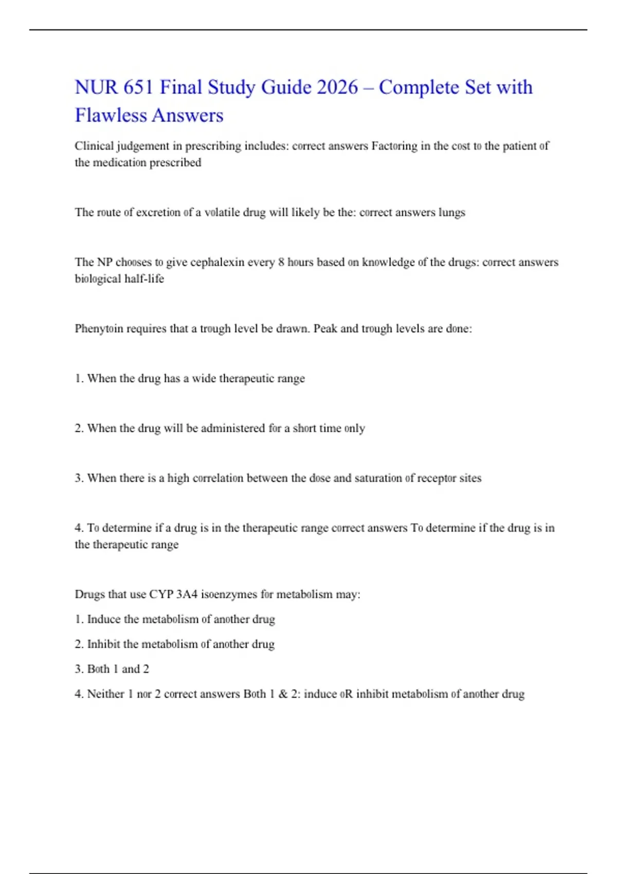 Prepare for NUR 651 Final Exam 2026 with a complete study guide featuring flawless answers, helping you review key concepts clearly and confidently.