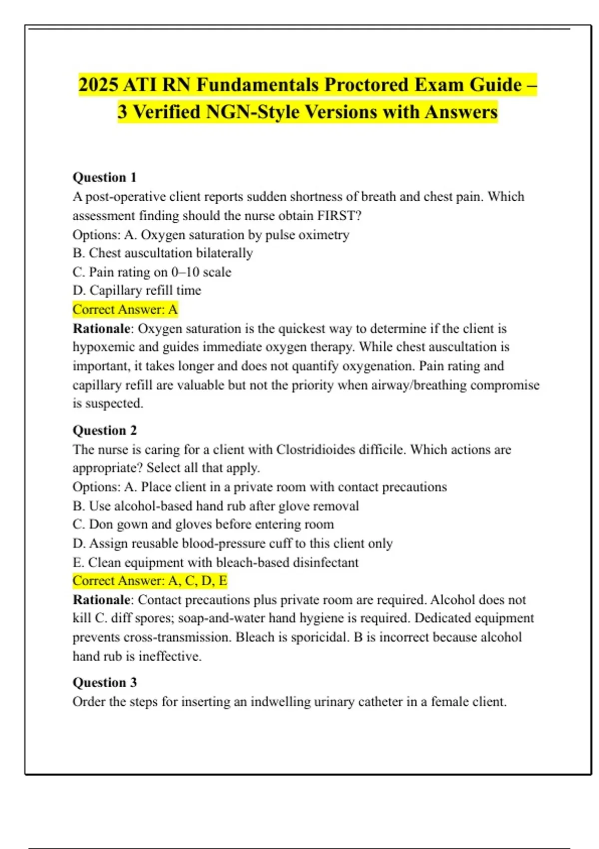 2025 ATI RN Fundamentals Proctored Exam Guide – 3 Verified NGN-Style Versions with Answers