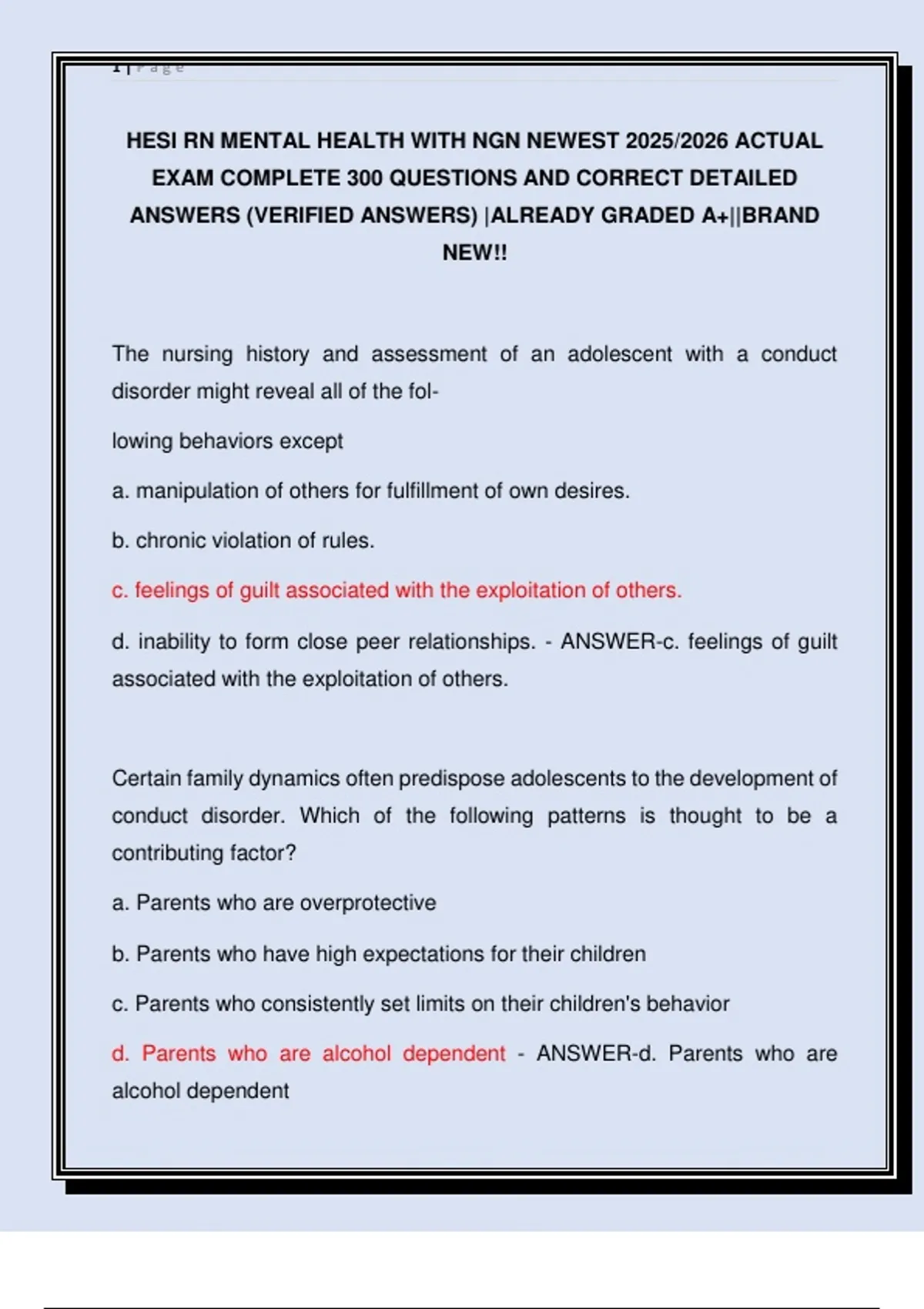HESI RN MENTAL HEALTH WITH NGN NEWEST 2025/2026 ACTUAL