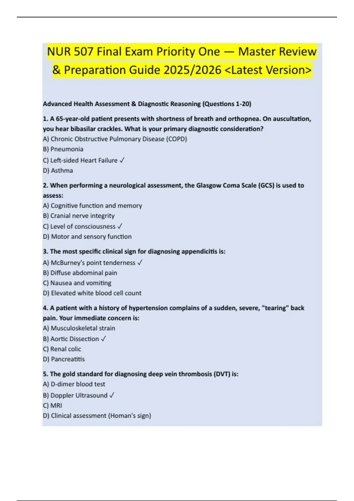 NUR 507 Final Exam Priority One — Master Review & Preparation Guide 2025/2026 <Latest Version>