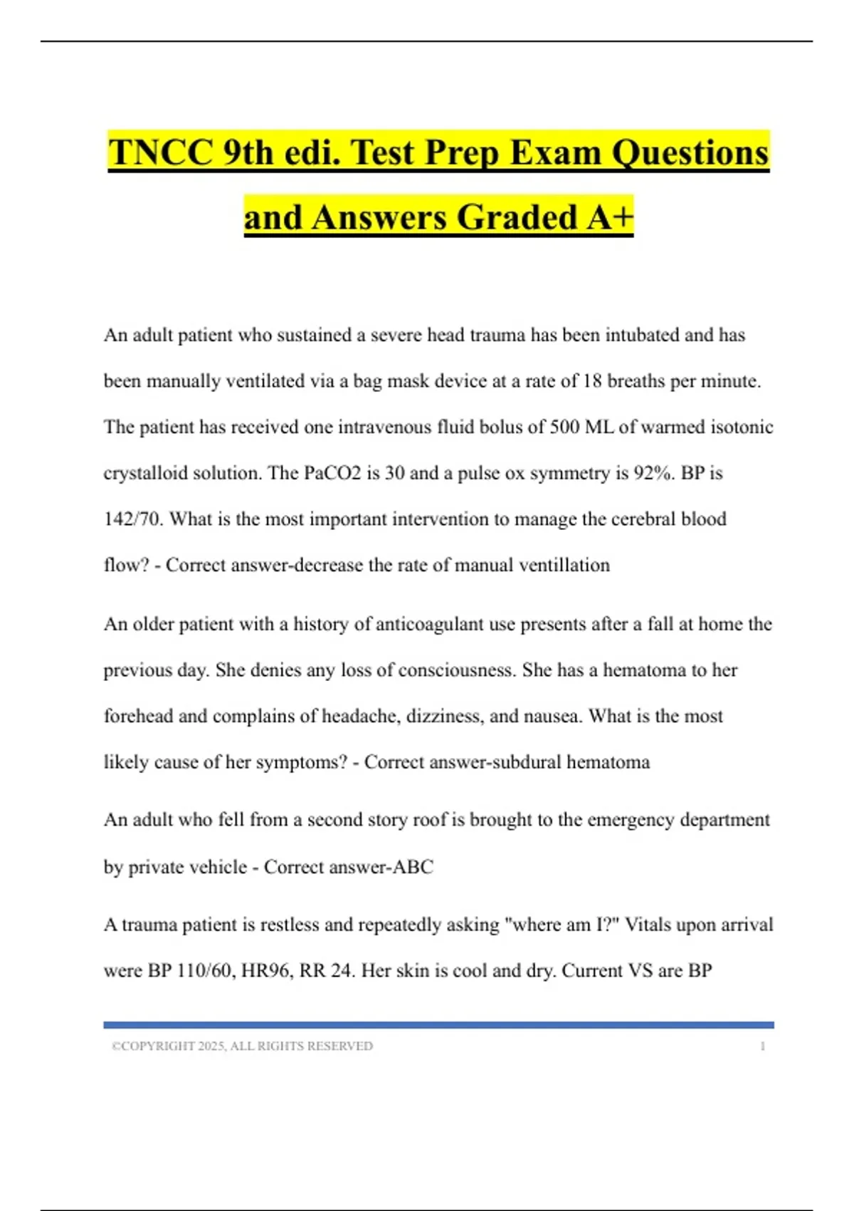 TNCC 9th edi. Test Prep Exam Questions and Answers Graded A+