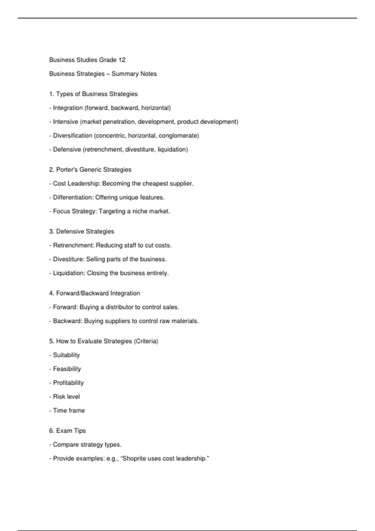Business Strategies – Summary Notes