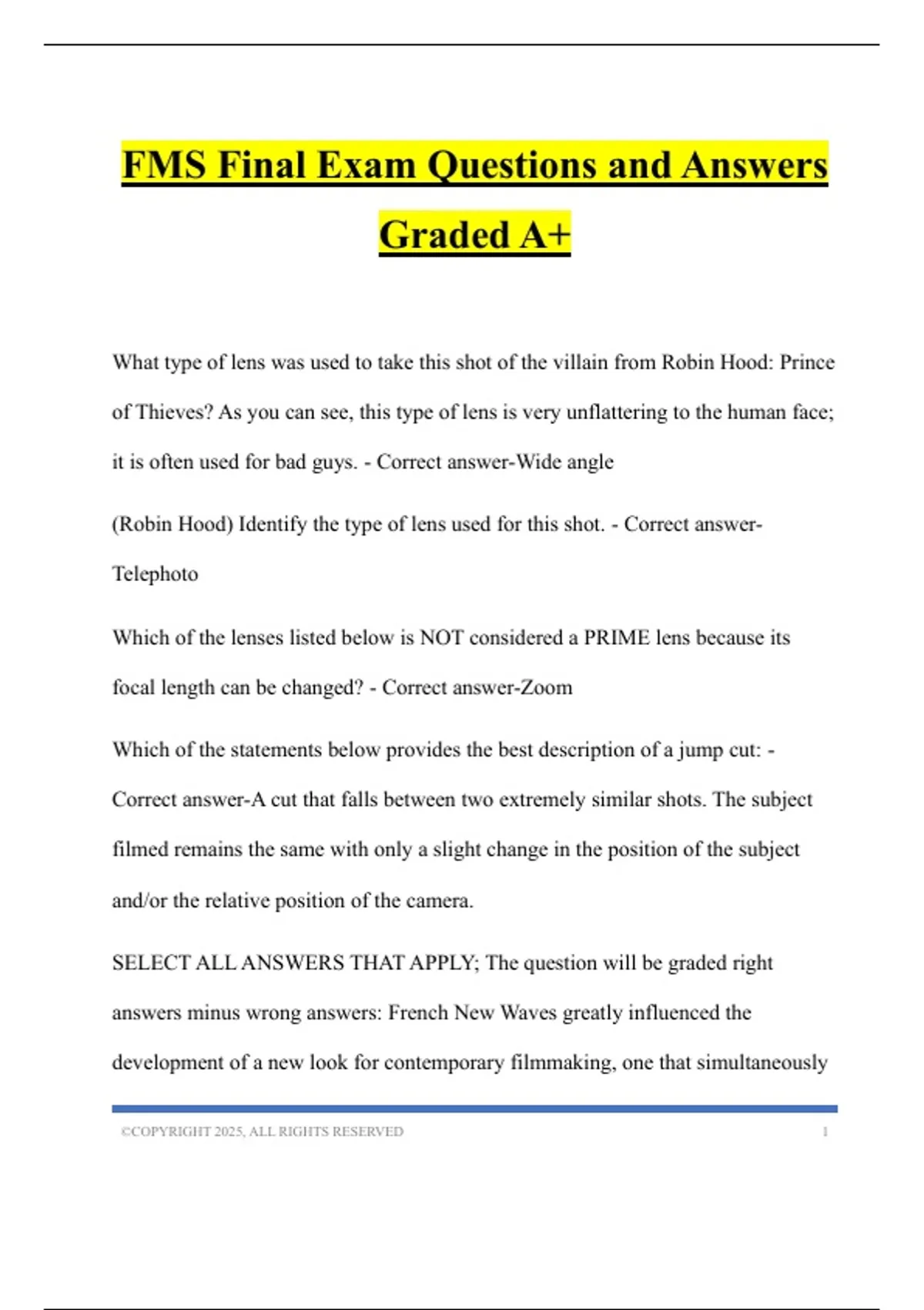 FMS Final Exam Questions and Answers