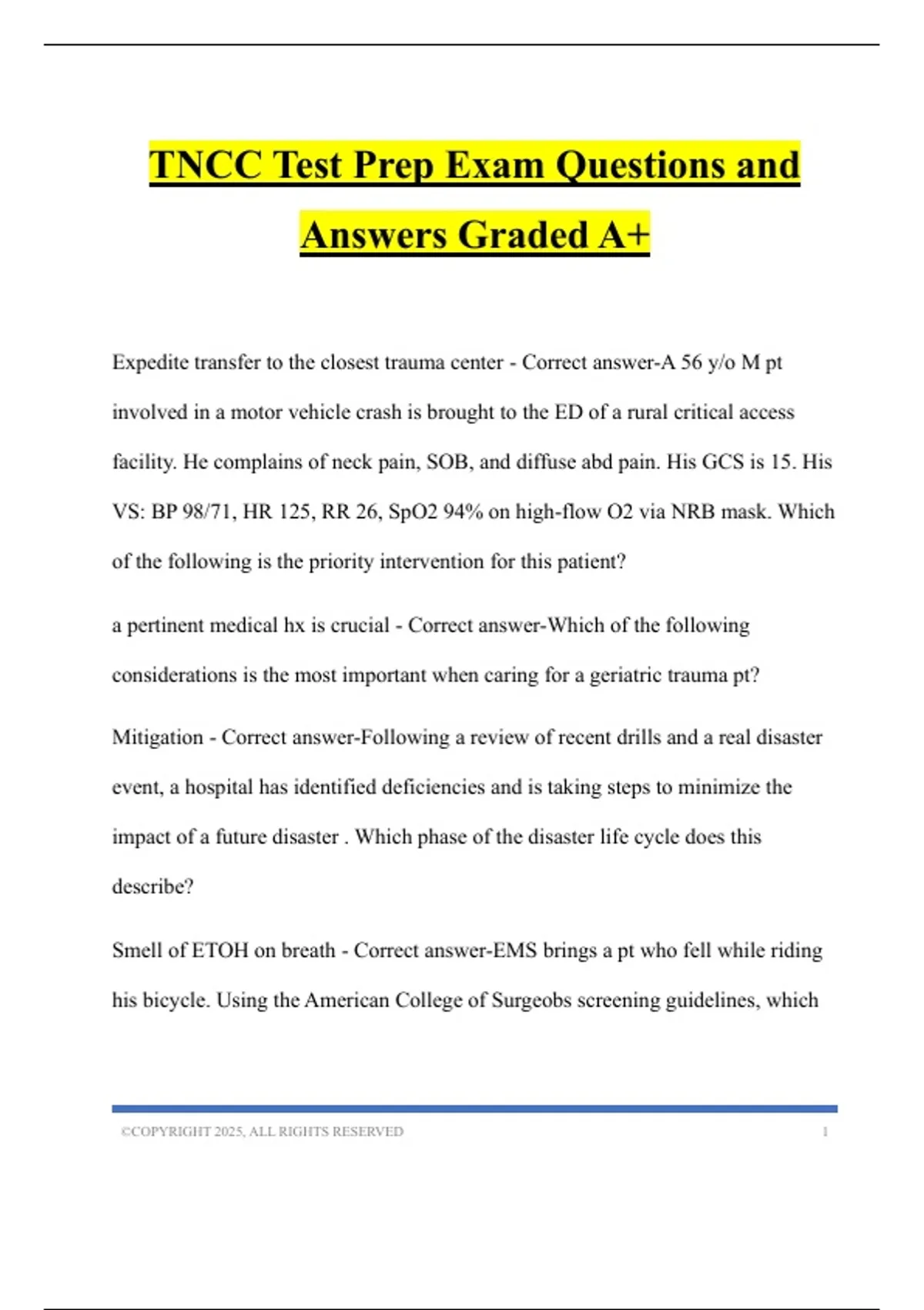 Expedite transfer to the closest trauma center - Correct answer-A 56 y/o M pt