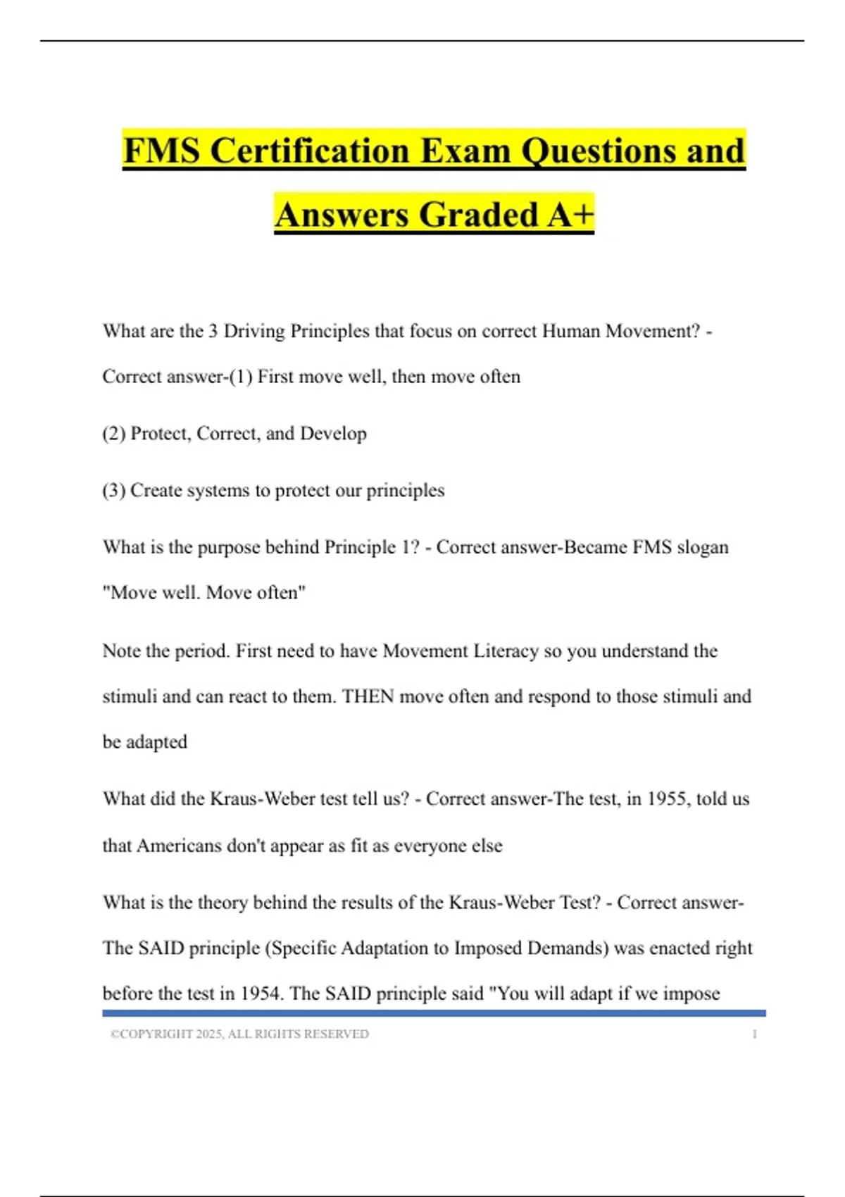 FMS Certification Exam Questions and Answers Graded A+