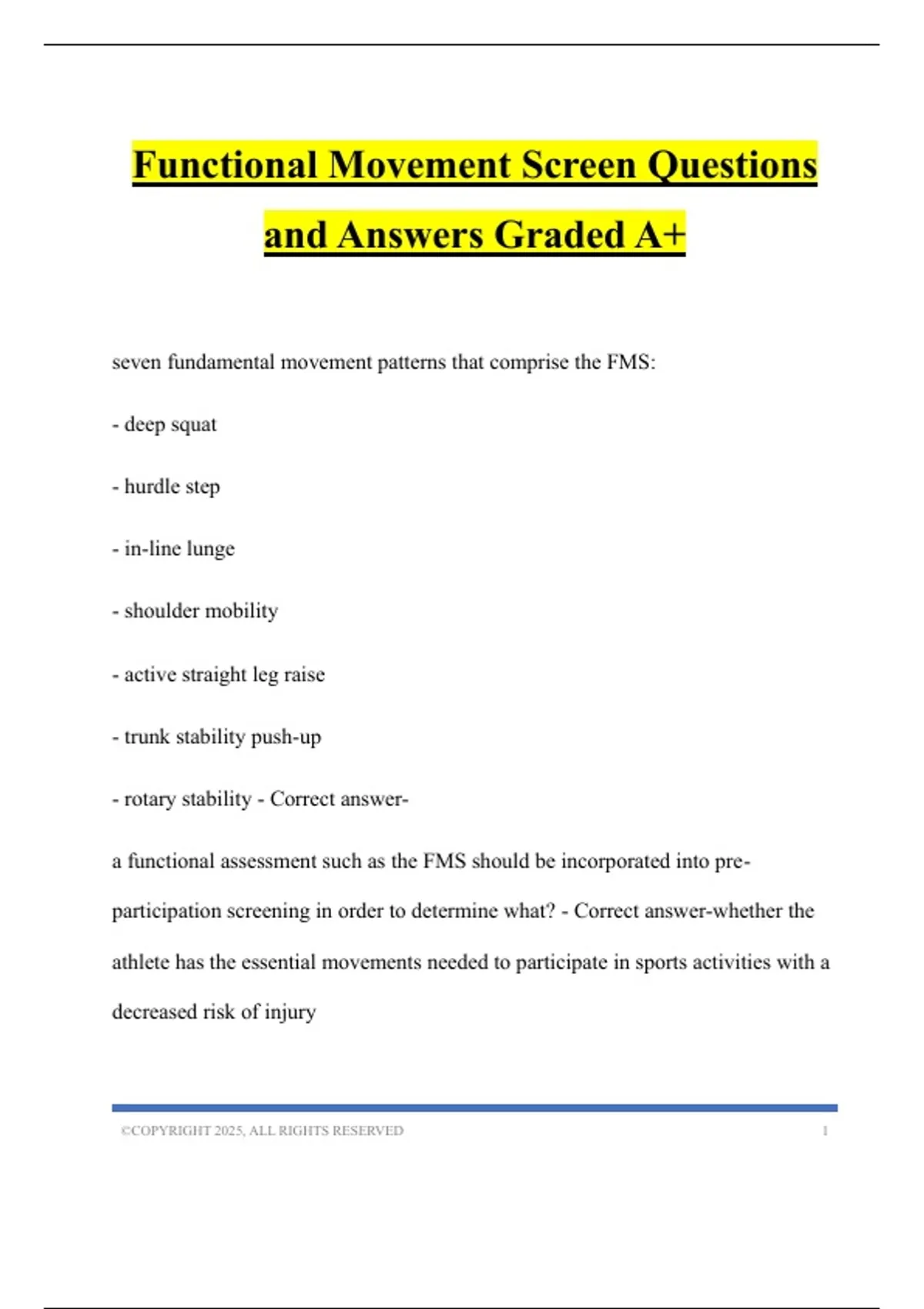 the Functional Movement Screen (FMS) is one evaluation tool that attempts to
