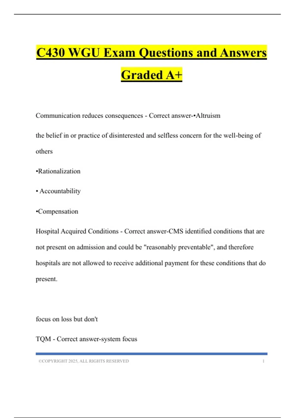 C430 WGU Exam Questions and Answers Graded A+