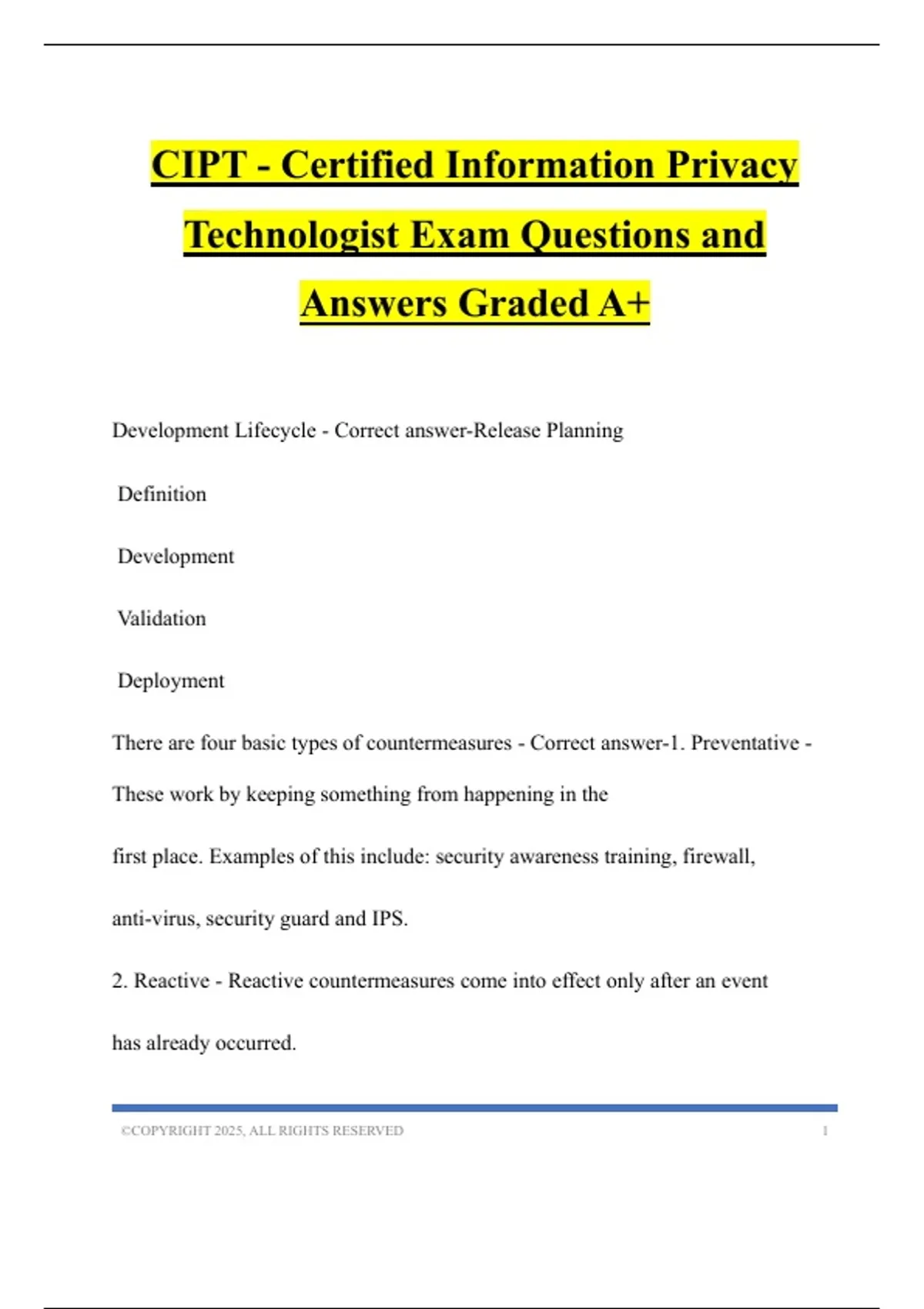 CIPT - Certified Information Privacy Technologist Exam Questions and Answers Graded A+