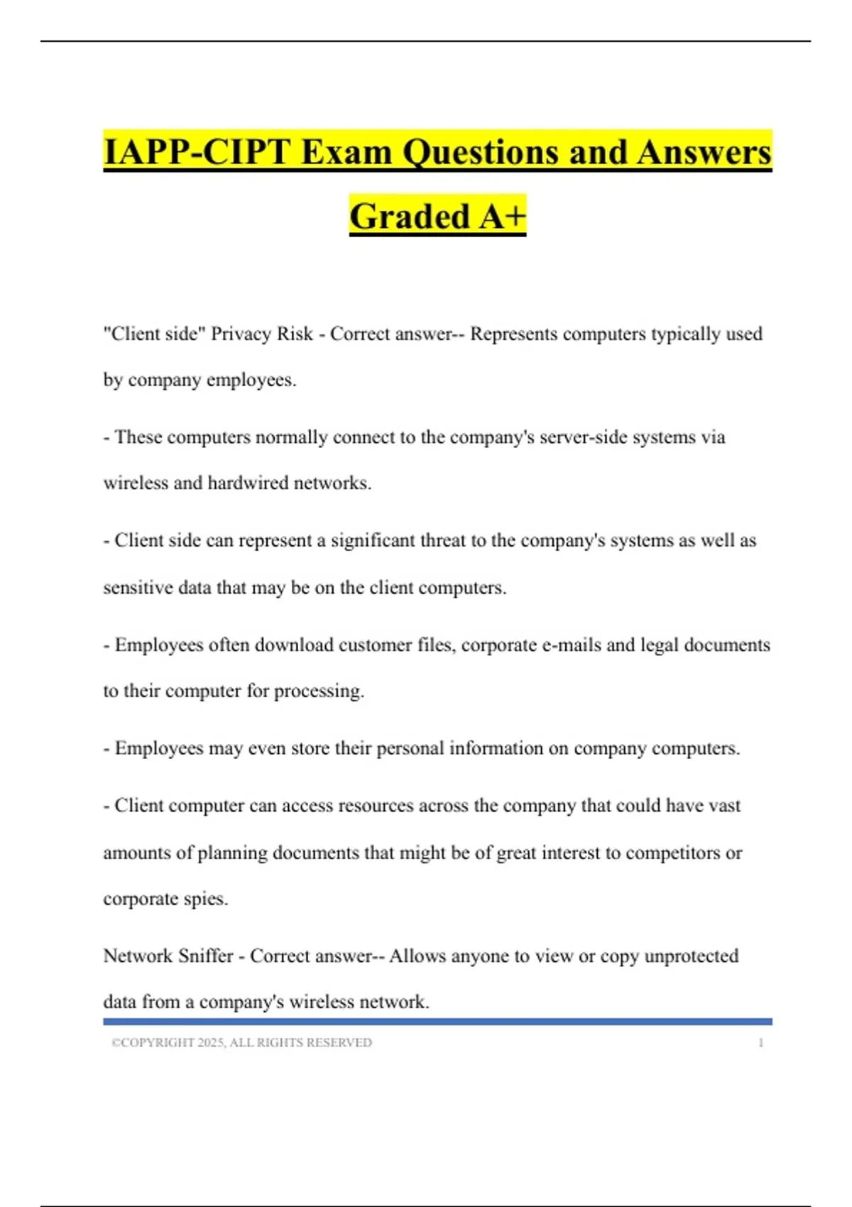 "Client side" Privacy Risk - Correct answer-- Represents computers typically used