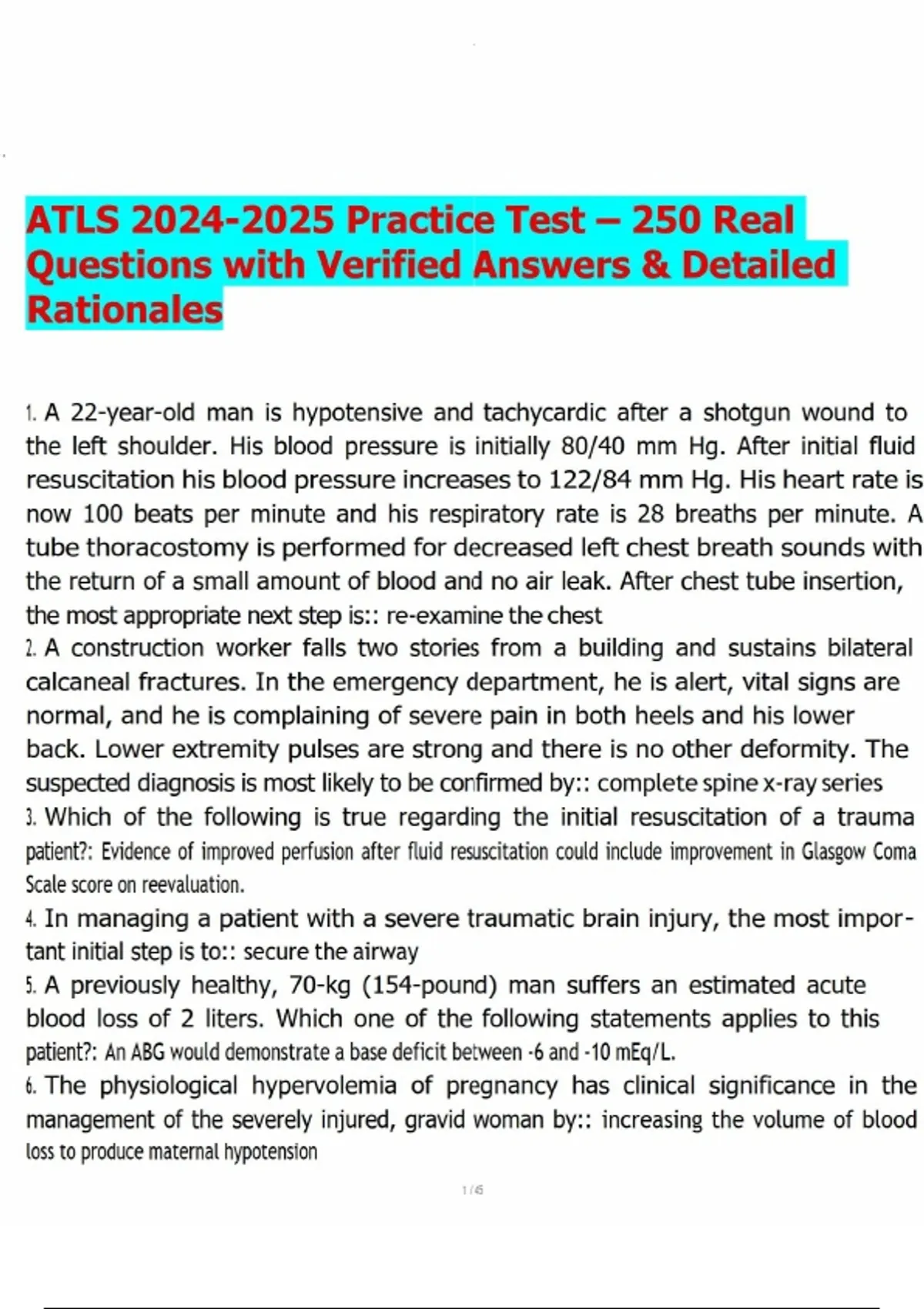 ATLS Practice Test – 250 Real Questions with Verified Answers & Detailed Rationales.pdf