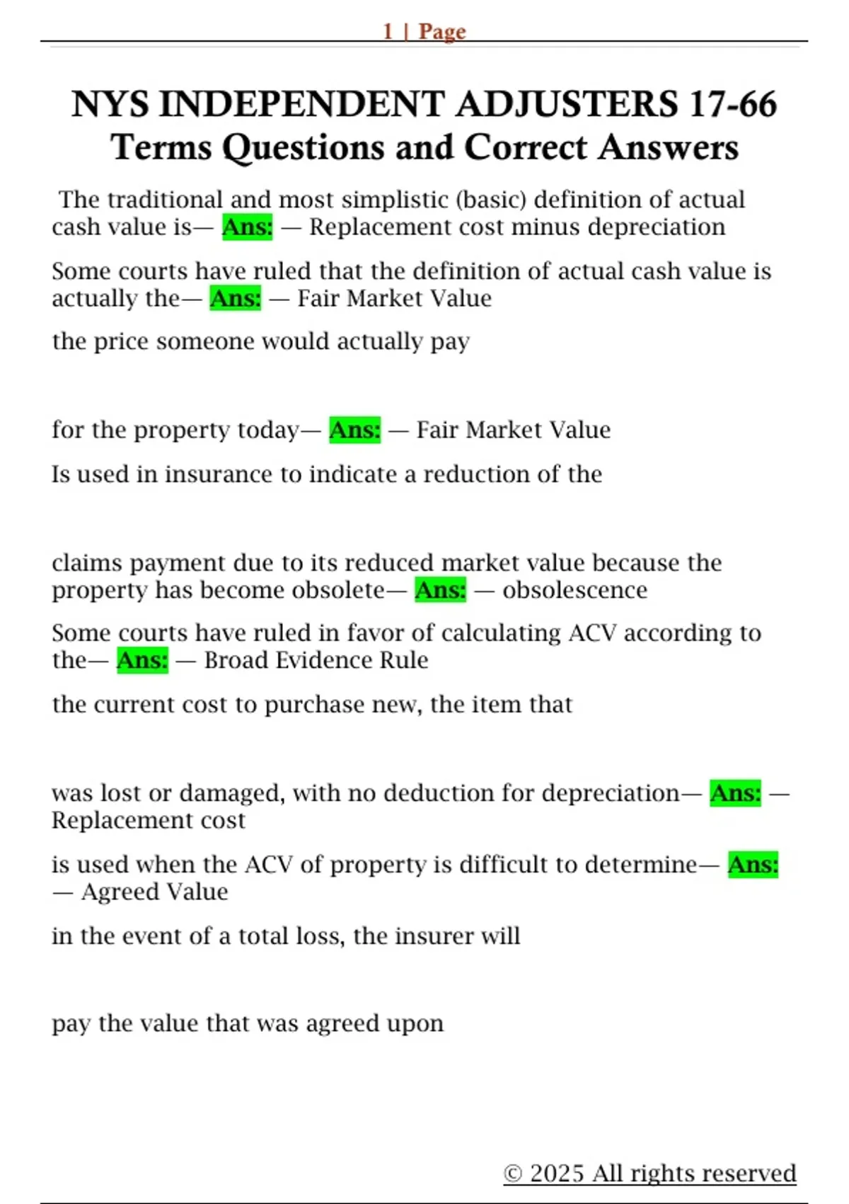 is used when the ACV of property is difficult to determine— Ans: