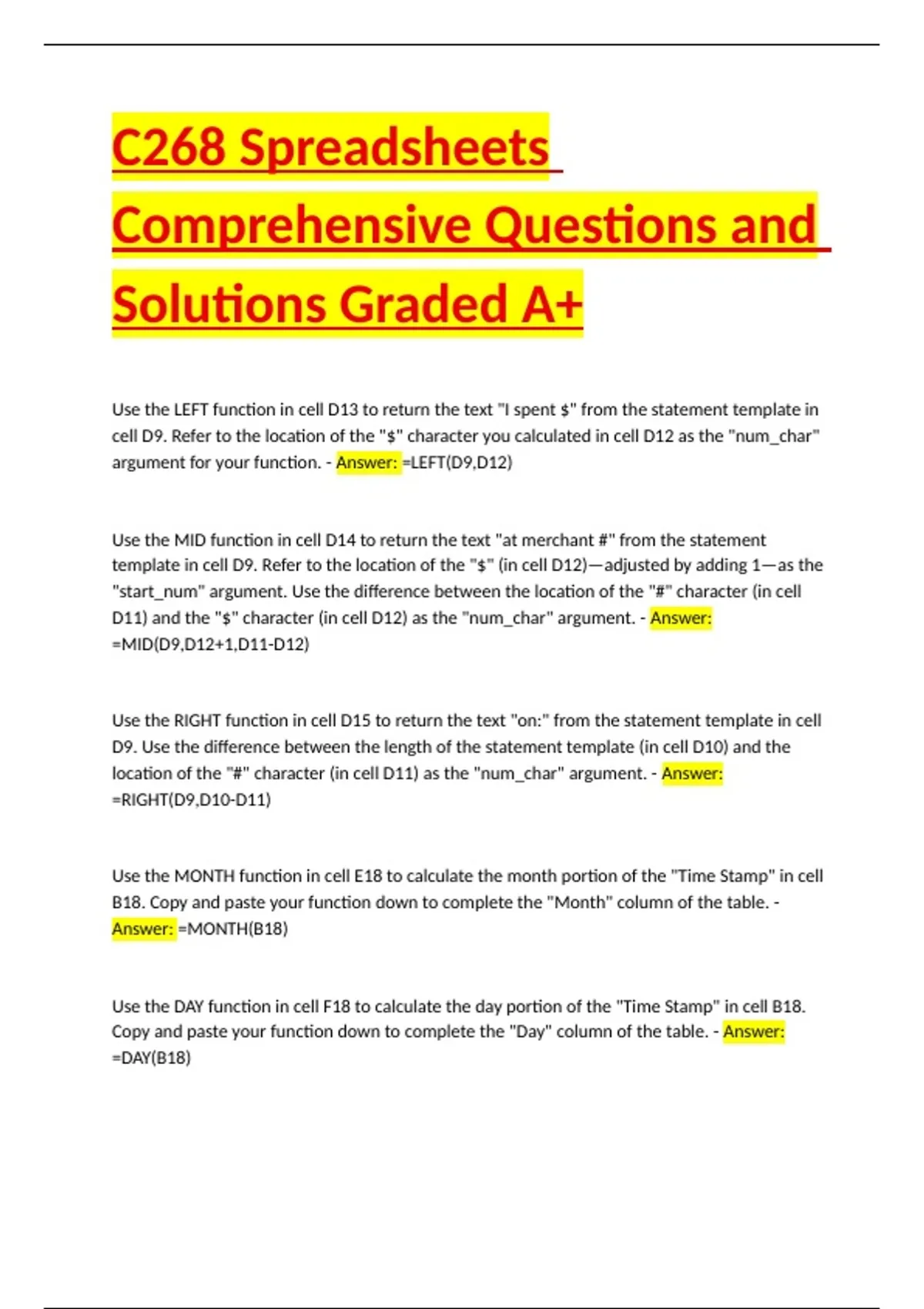 C268 Spreadsheets Comprehensive Questions and Solutions Graded A+