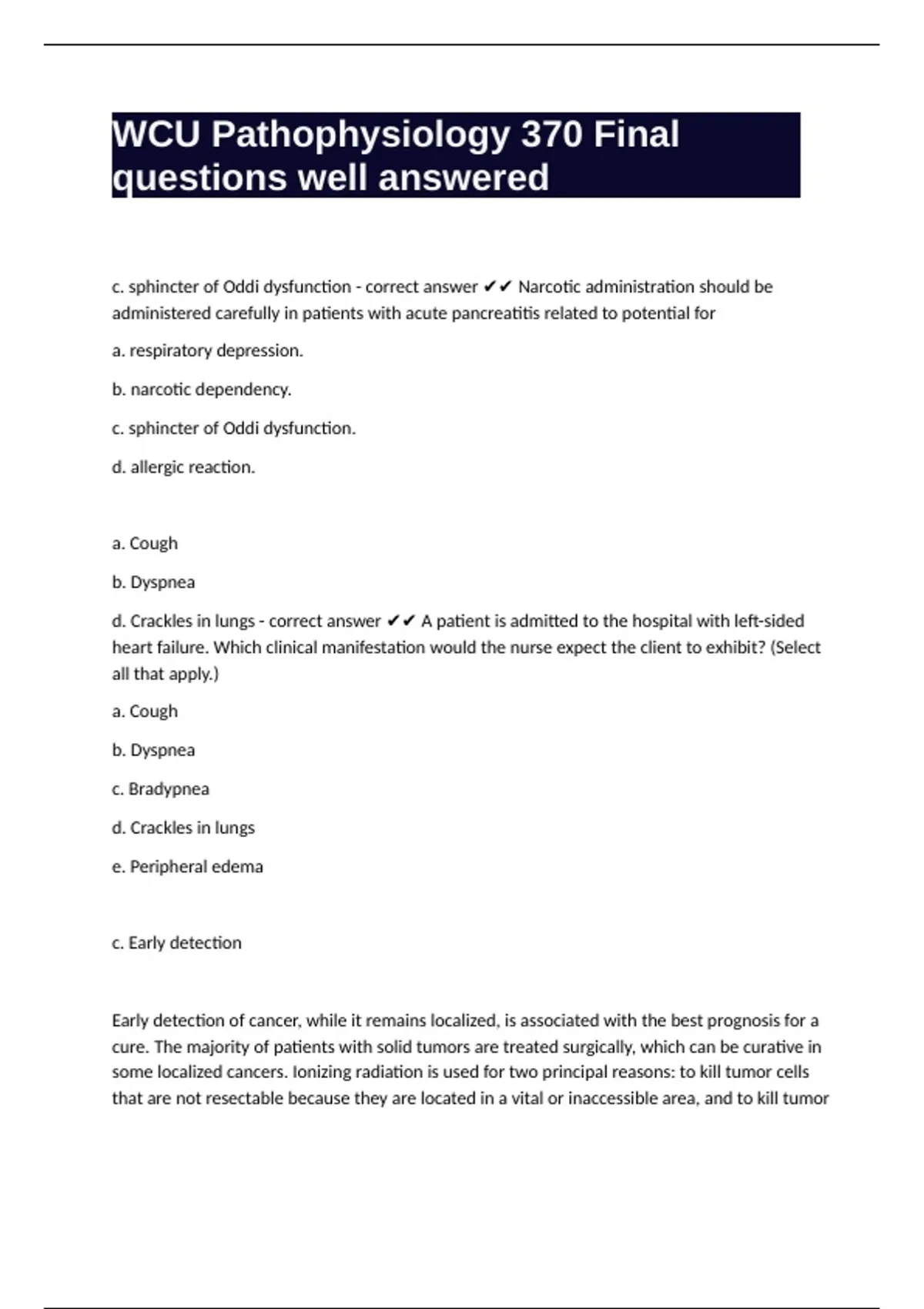 WCU Pathophysiology 370 Final questions well answered
