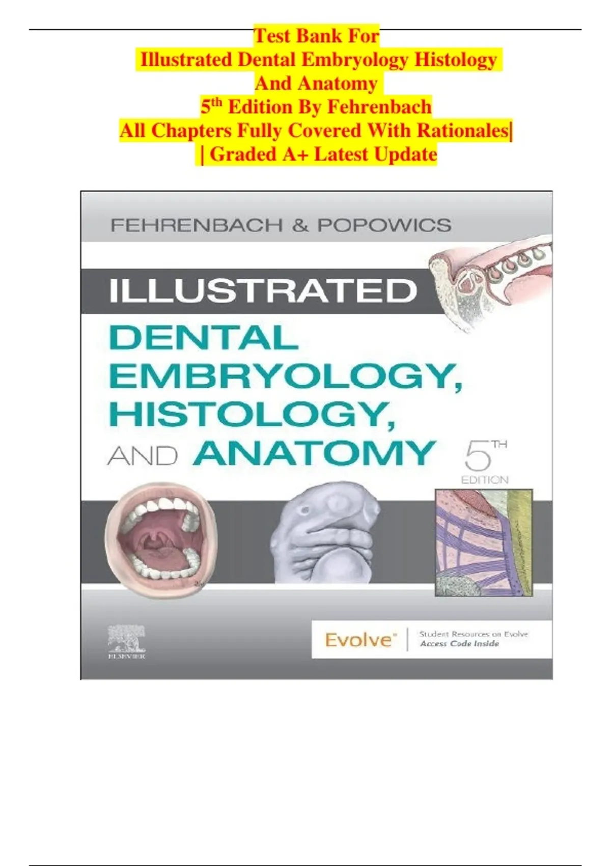 Test Bank for Illustrated Dental Embryology Histology and Anatomy 5th Edition Fehrenbach | Rationales Included