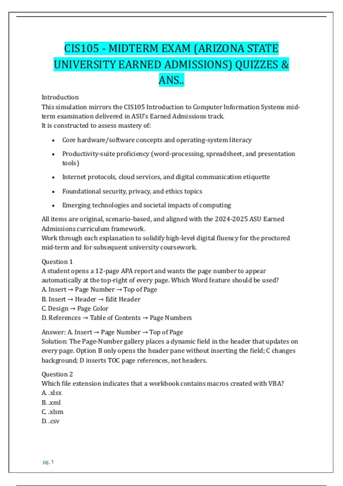 This simulation mirrors the CIS105 Introduction to Computer Information Systems mid-