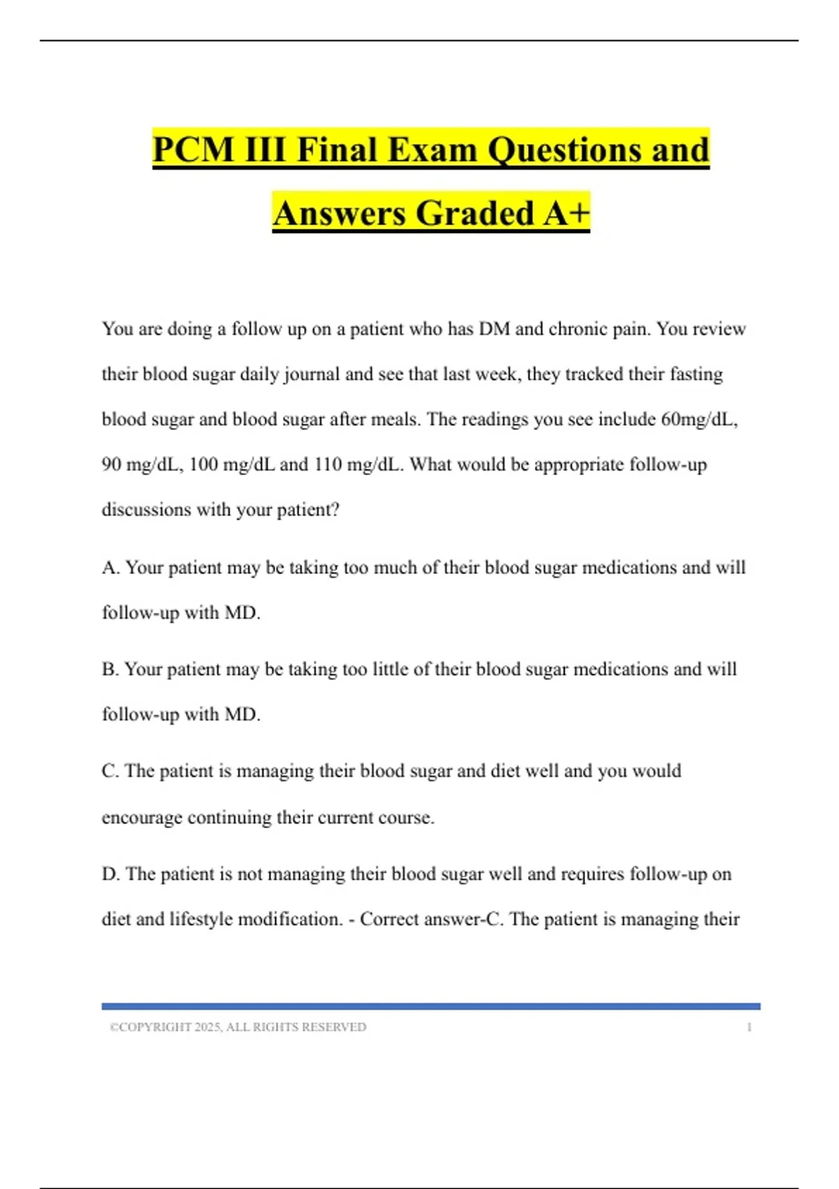 PCM III Final Exam Questions and Answers Graded A+
