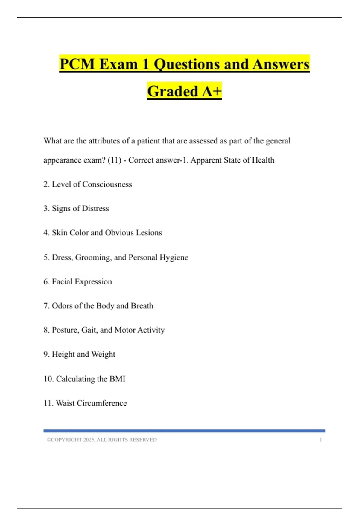 appearance exam? (11) - Correct answer-1. Apparent State of Health