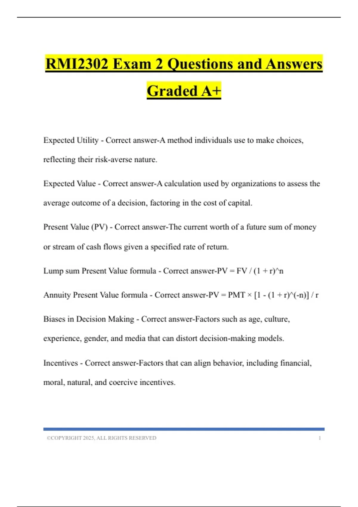 Expected Value - Correct answer-A calculation used by organizations to assess the