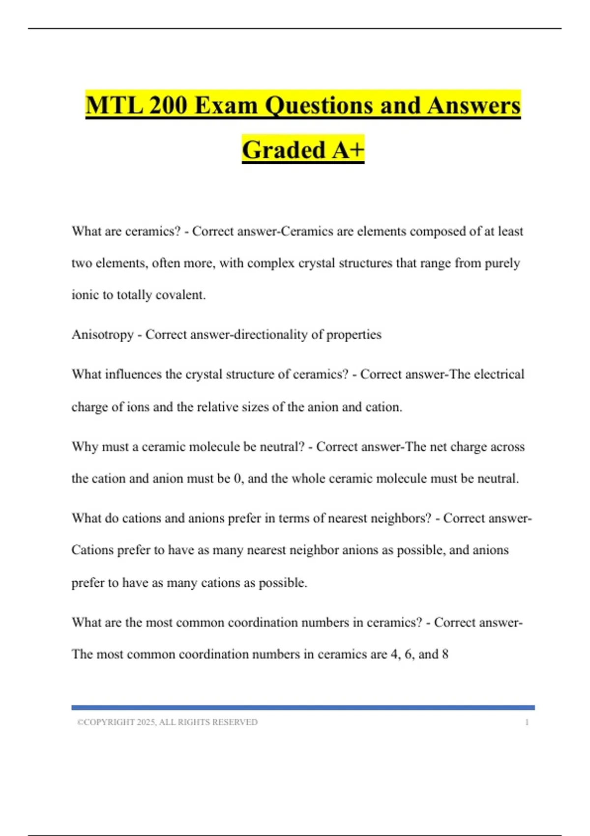 MTL 200 Exam Questions and Answers Graded A+