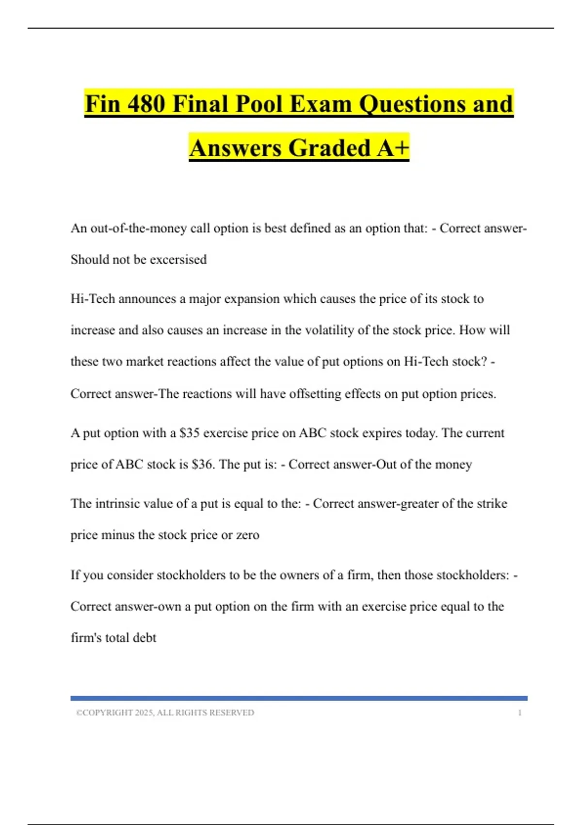 The intrinsic value of a put is equal to the: - Correct answer-greater of the strike