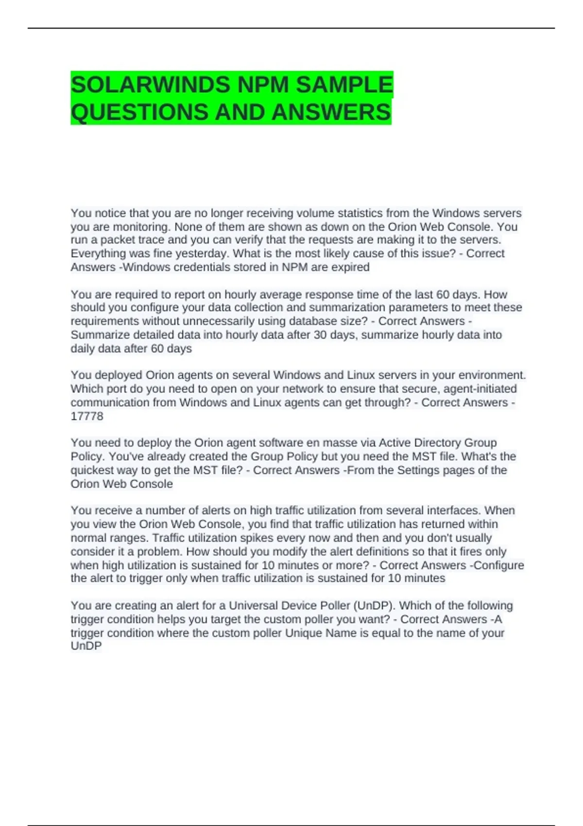 SOLARWINDS NPM SAMPLE QUESTIONS AND ANSWERS